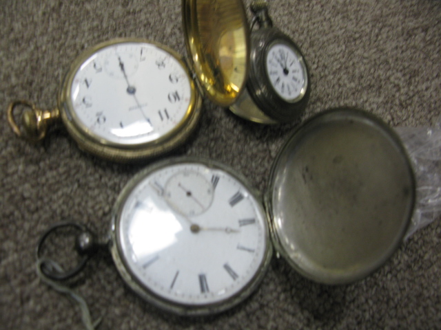 Three pocket watches 1 gold plated Waltham and 2 silver watches.