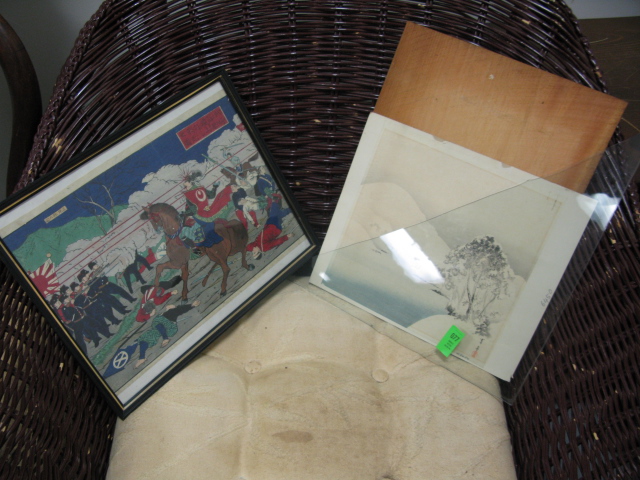 Seven framed pieces, including a couple of vintage photographs, pencil signed prints, Victorian shadow box.