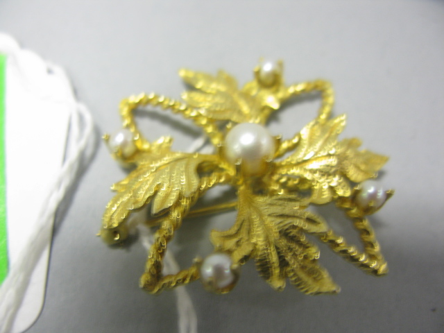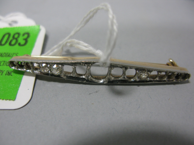 14K and platinum pin with three diamonds, several diamonds missing, 6.3 grams.