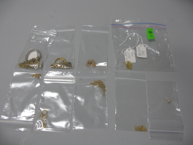 Group lot to include gold chains, 13.8 grams of 14K and 2.9 grams marked 417, along with two small bags of costume jewelry.