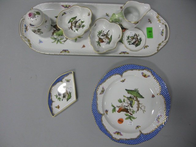 Eight piece Herend lot including long tray, creamer, two dishes, caster, bowl and two small pieces.