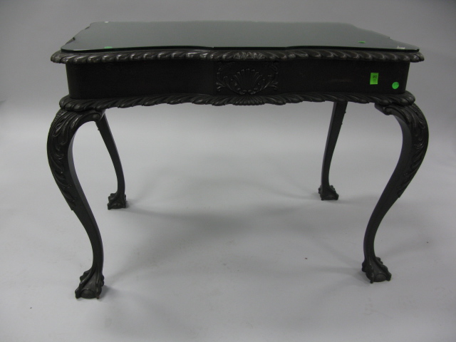 Custom mahogany Queen size canopy bed with carved and fluted posts and carved ball and claw feet.