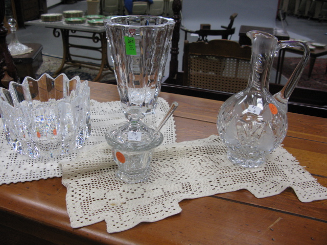 Four piece crystal lot, two Orrefors, one Baccarate and one unsigned.