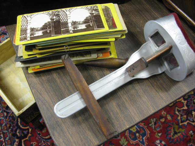 One stereo viewer, including American views, Worcester, MA house explosion, a fair 1869 at the Hartford rink in Hartford, CT, New Hampshire, President Garfield’s bedroom, City Park in Hartford, views of the retreat for the insane, Main Street, Hartford, CT with a sink hole in the road, and more.