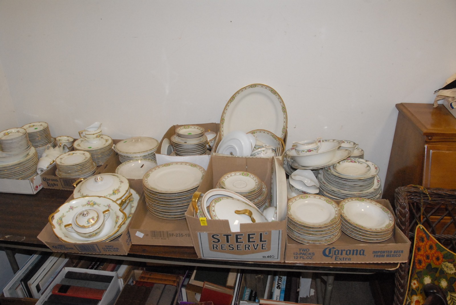Group lot to include a table lot of 3 sets of china including large set of Theodore Havilland china
