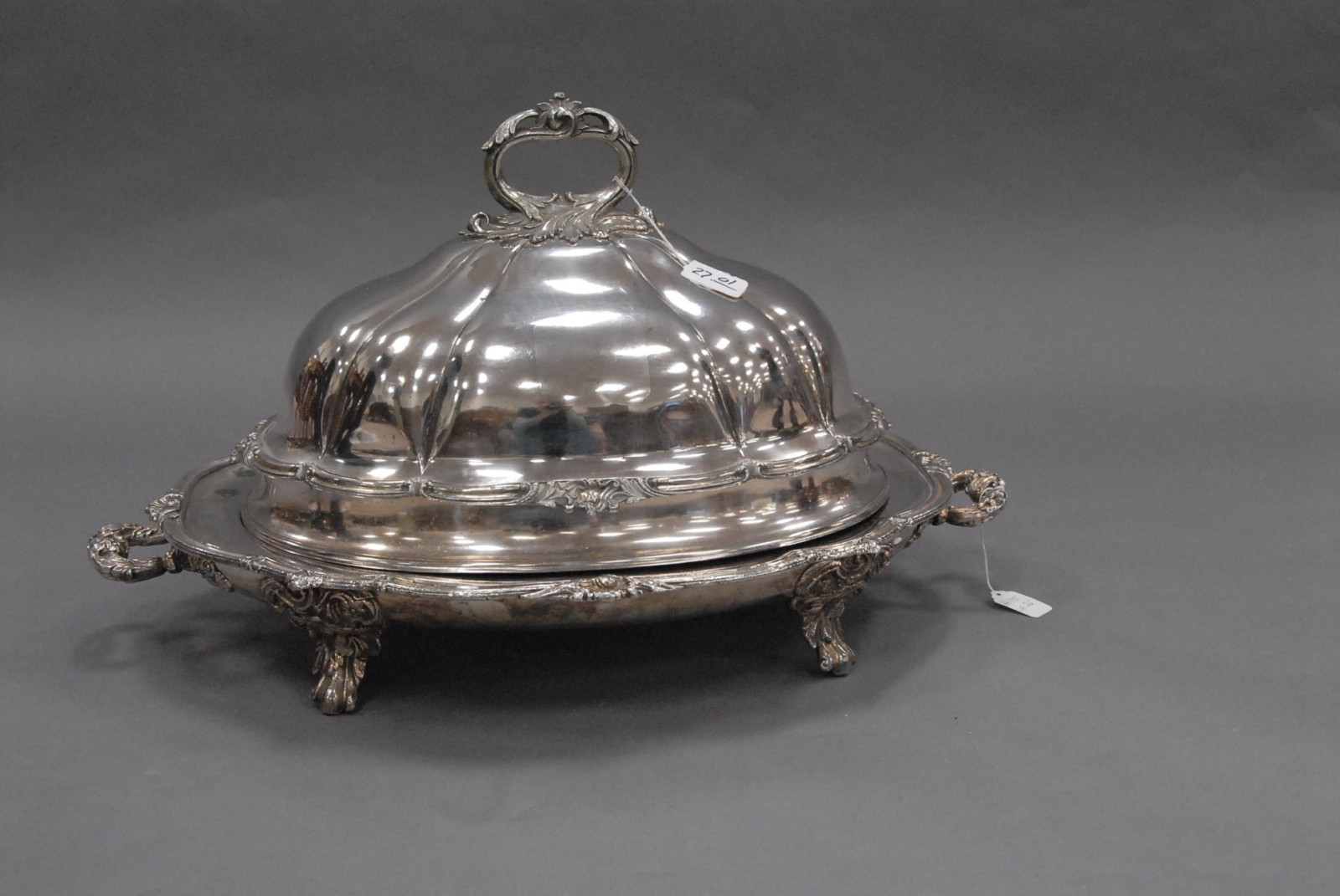 Sheffield silver plated warming Well and Tree footed meat platter along with near matching Sheffield entre cover, 19th century.