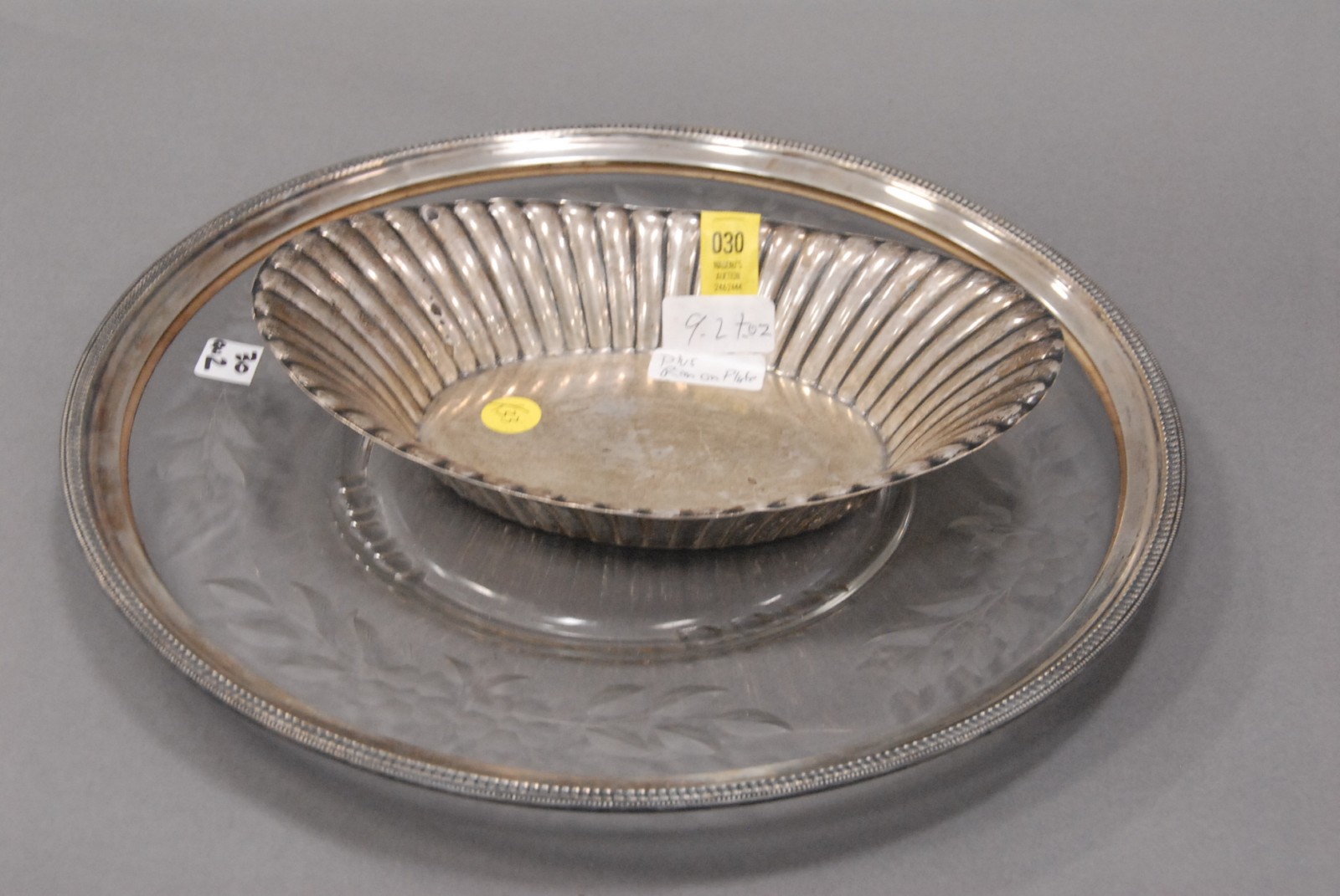 Sterling silver 2 pc. lot – oval bowl & crystal plate with a sterling rim