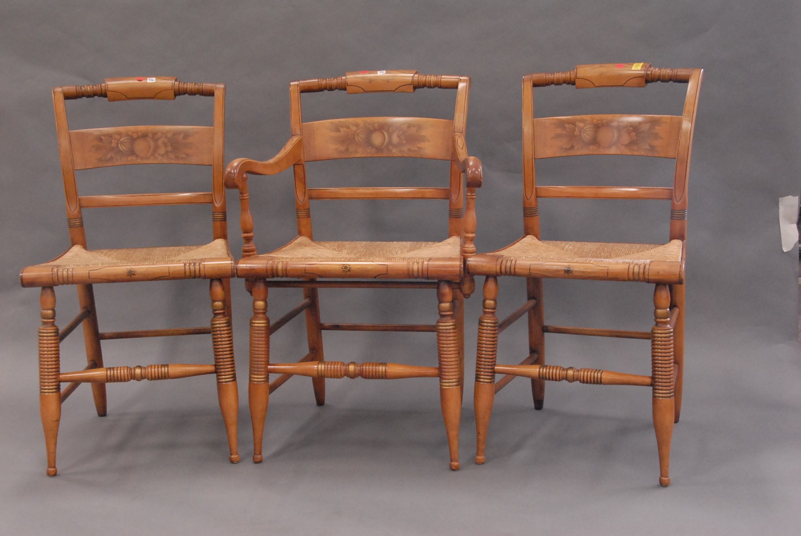 set of 6 signed Hitchcock rush seat maple chairs