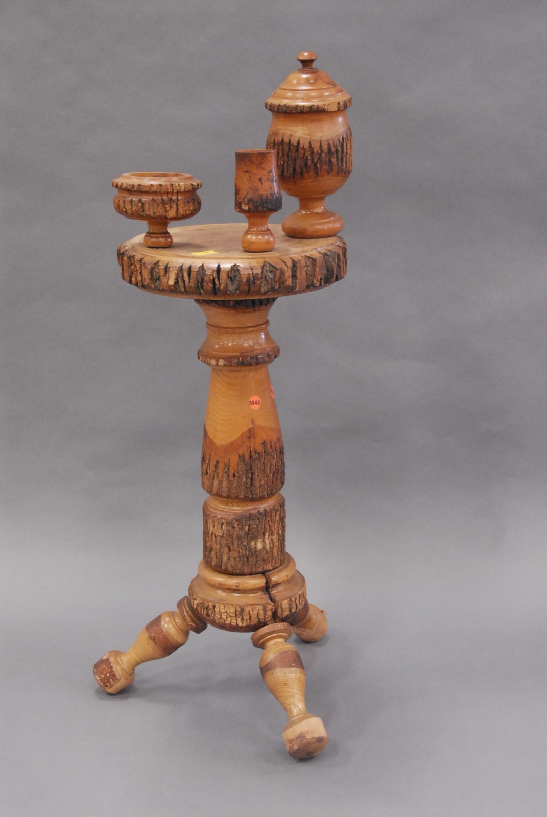 Group of furniture including a stacking bookcase, 2 pie crust tables, tip table, cottage stand