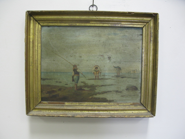 Oil on canvas mounted on board of a horse drawn coach unsigned 19th century