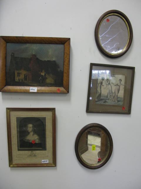 6 piece lot to include a pair of paintings, 2 prints and 2 mirrors