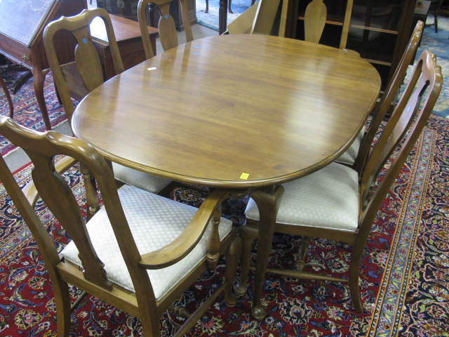 Ethan Allen oval rock maple table & 6 Queen Anne style chairs