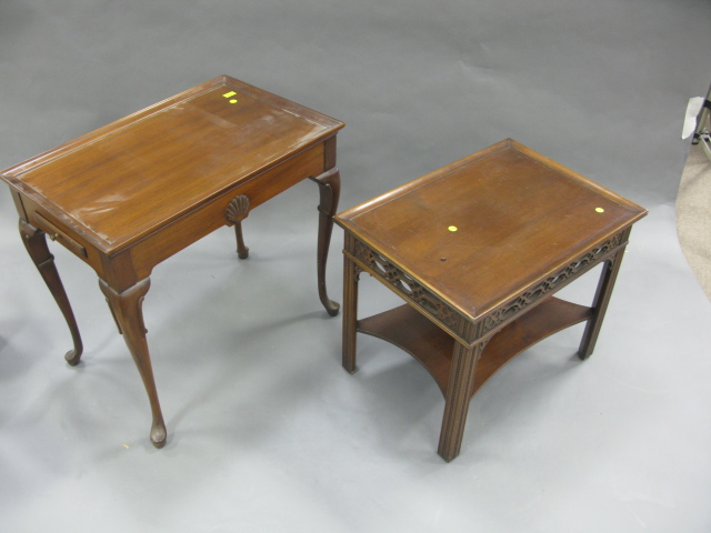 2 tables – Mahogany Queen Anne style tea table with slides & Chippendale style table