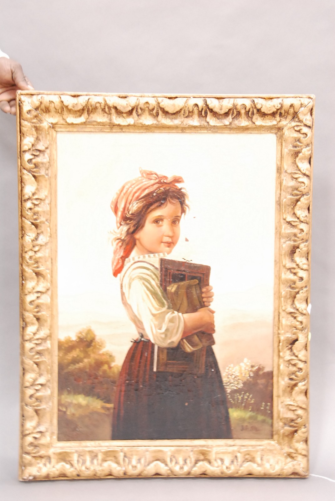 Julius Gari Melcher, YOUNG GIRL WITH BOOKS, oil on canvas, signed lower right J.G.M.