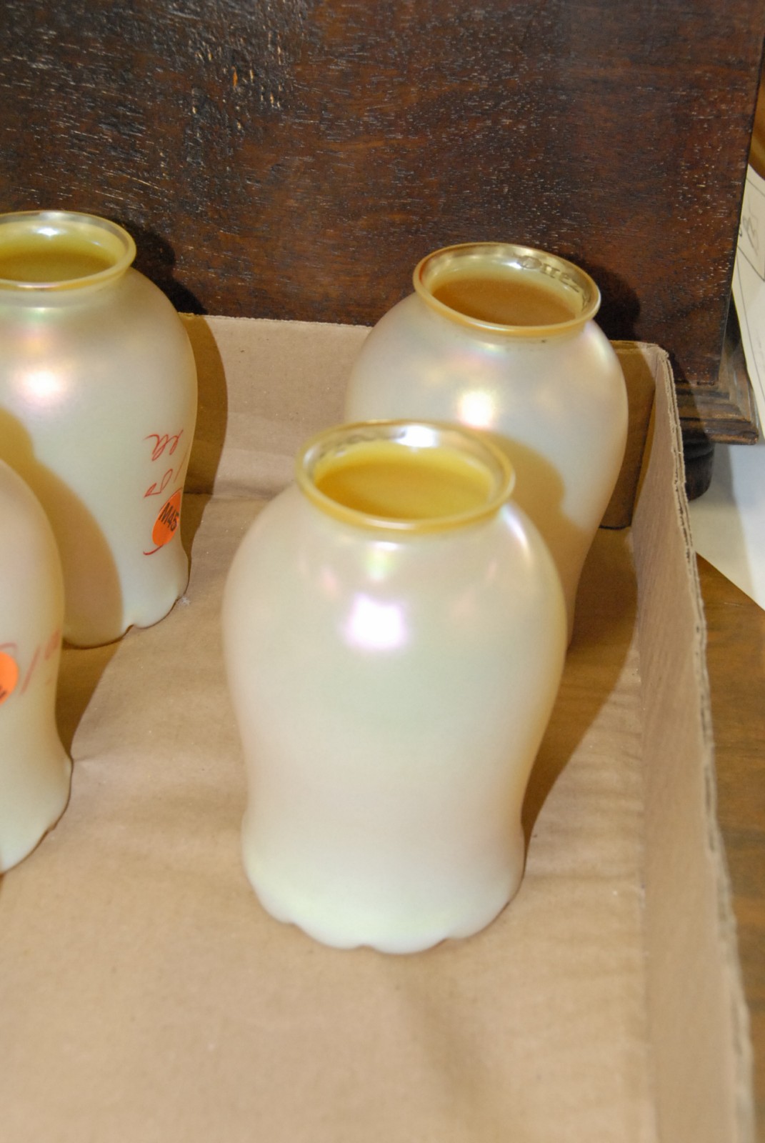 Set of five signed Quezal lamp shades