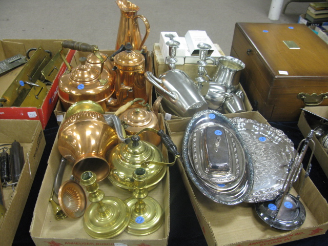4 box lots of copper and silver plate along with fitted box