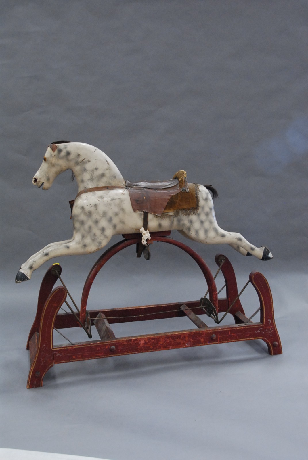 Primitive rocking horse, dapple grey in original paint, some accessories, as is