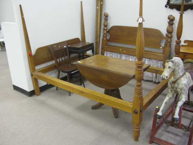 Sheraton double bed with two turned and fluted posts.