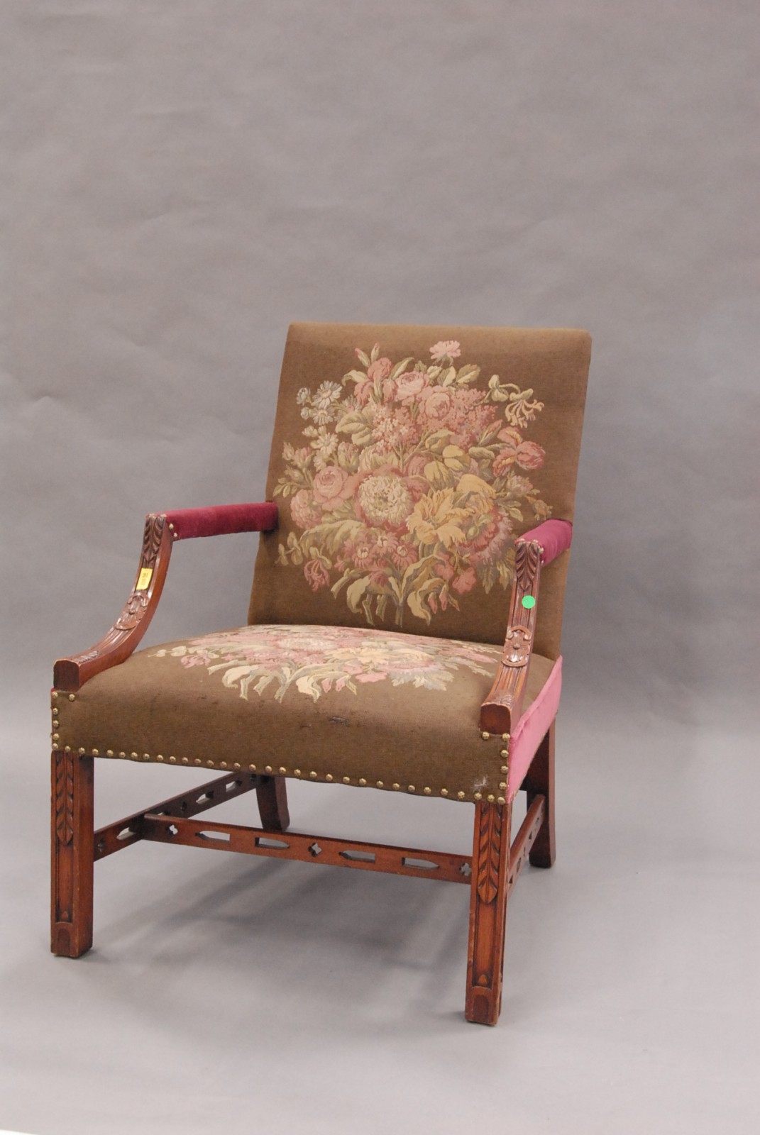 Chippendale style upholstered armchair with tapestry style material