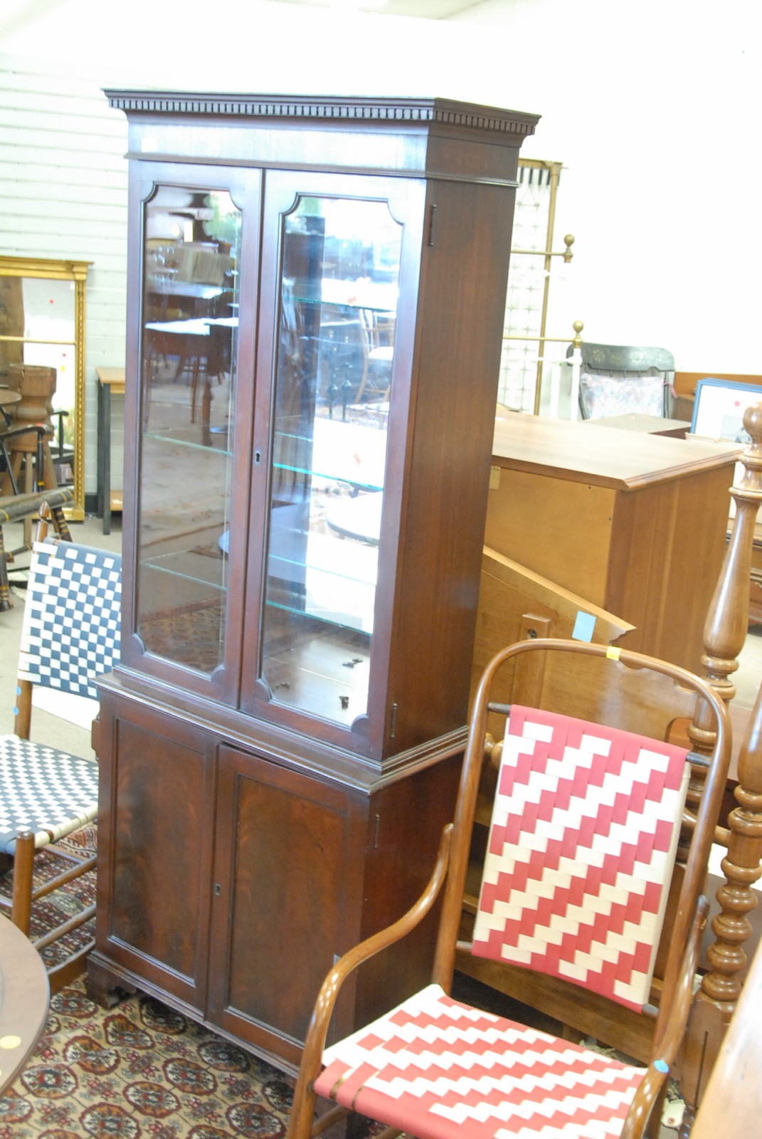 Mahogany china cabinet with glass shelves