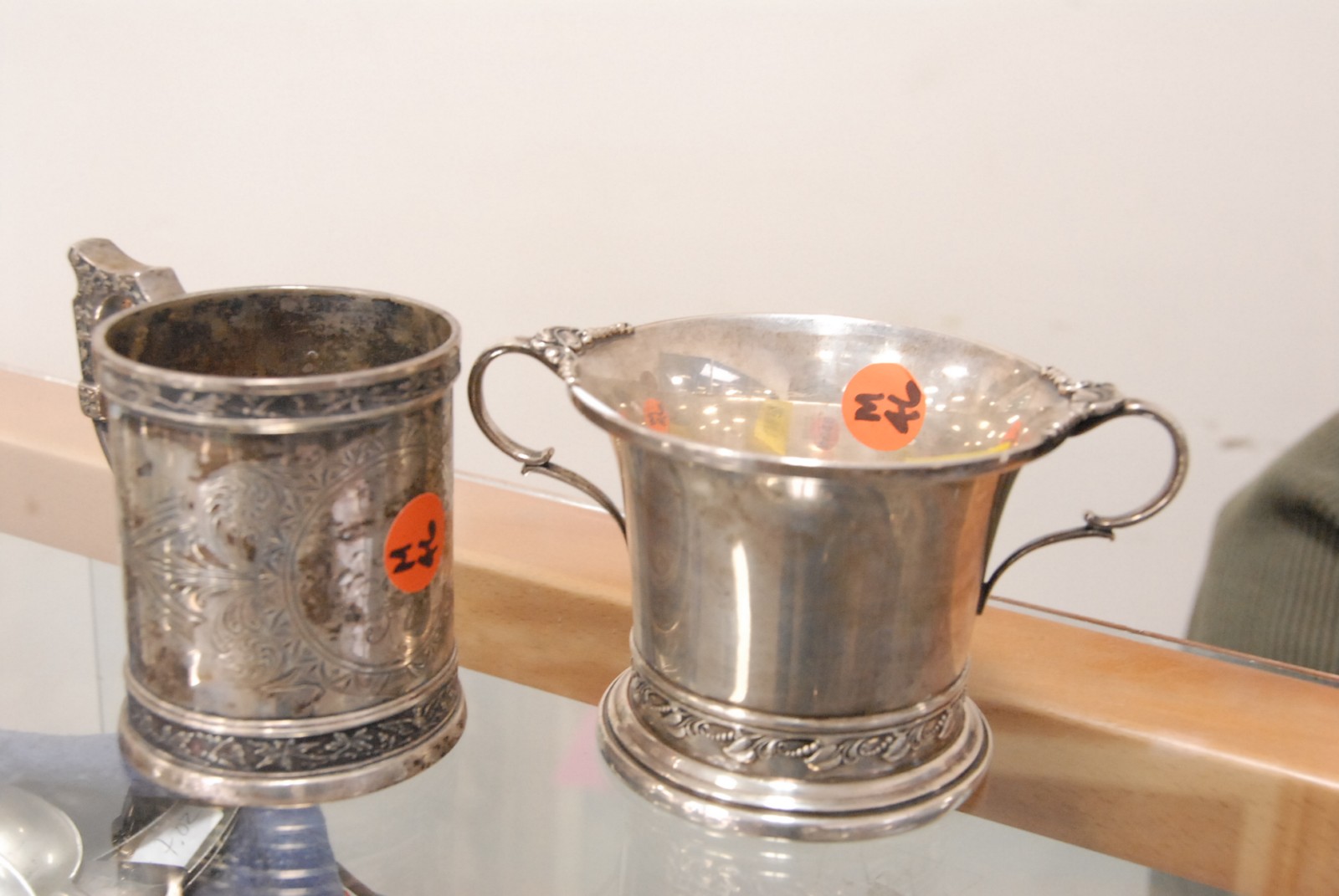 2 lots of sterling silver mugs