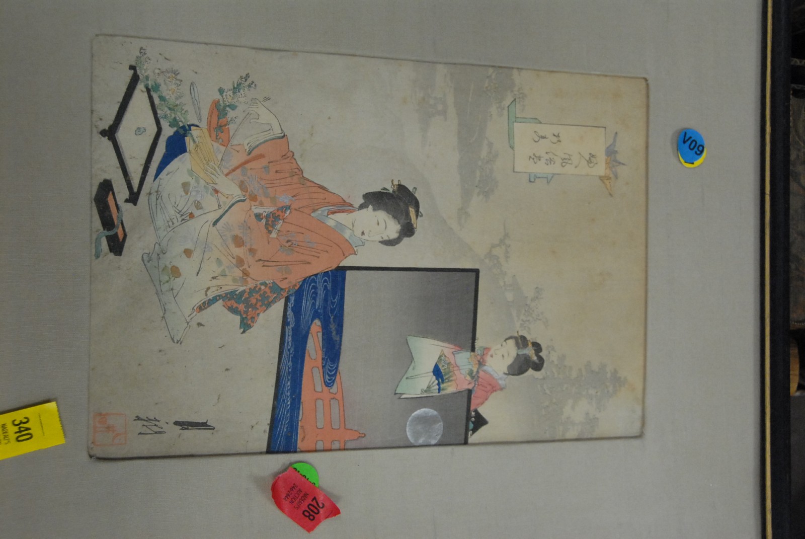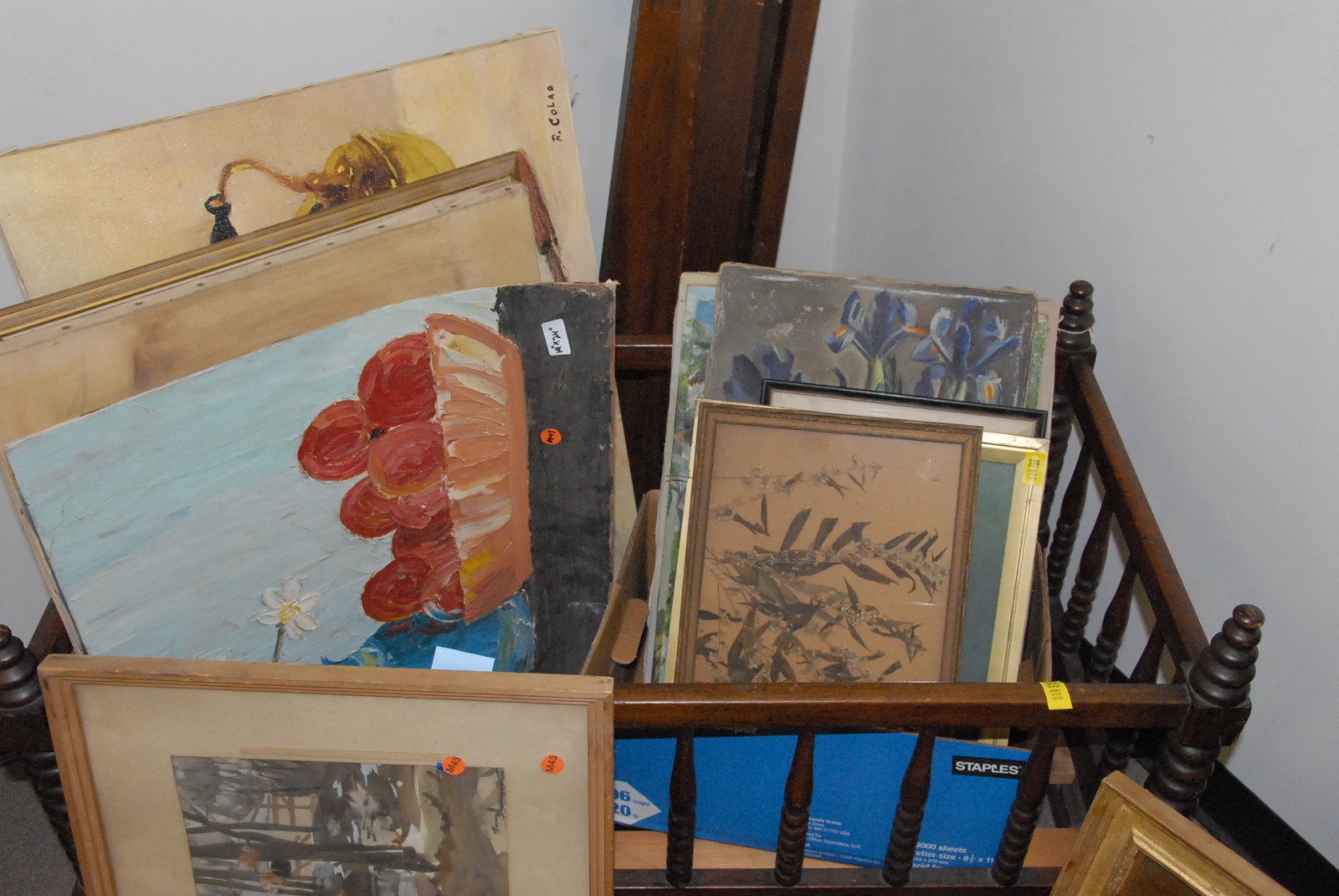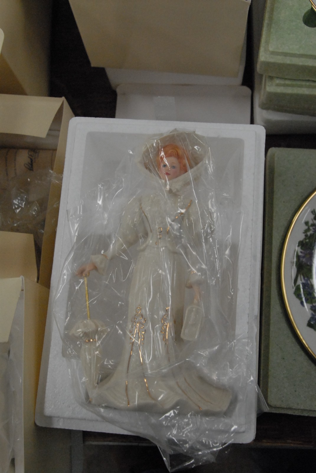 7 box lots to include dishes, plates, copper teapot, binoculars, everyday glasses, and glassware, brass enameled box and some books, The Story of The War of 1898, and a crystal deer