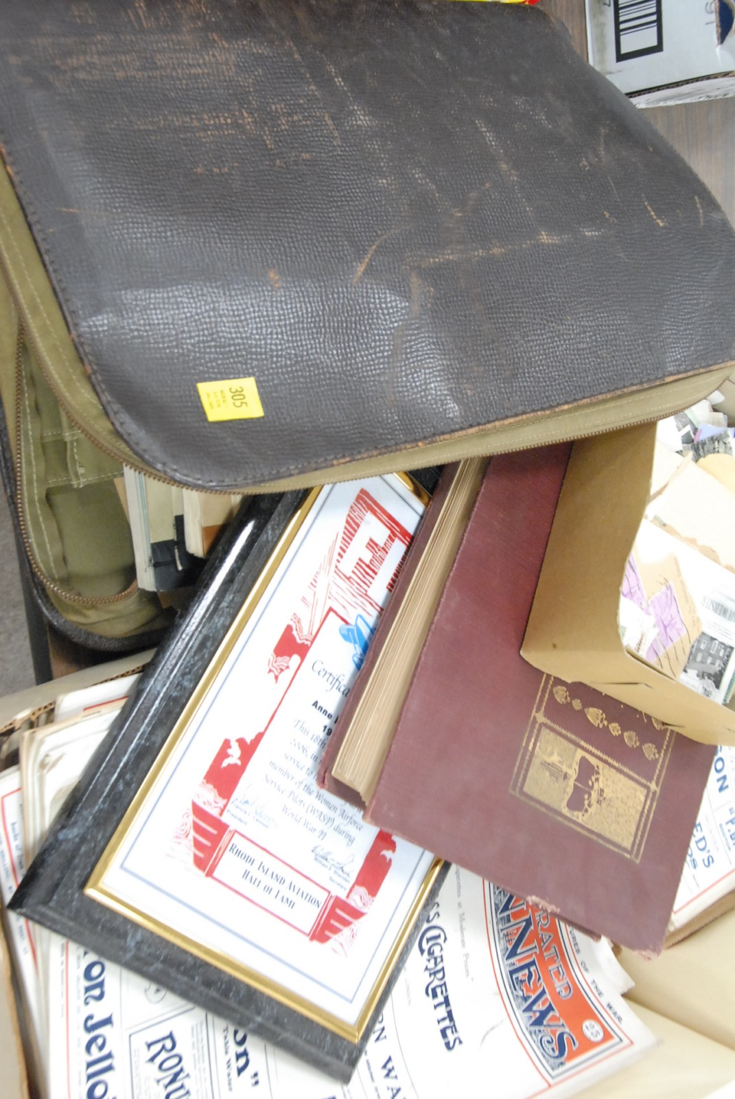 Leather briefcase marked inside George Kenyon, embossed, pilots navigation kit air forces US Army, second World War era, pilots handbook, radio operators information file, how to keep your R.O.I.F. up to date, navigation charts from that era, radio logs, many documents from the Miami FL area