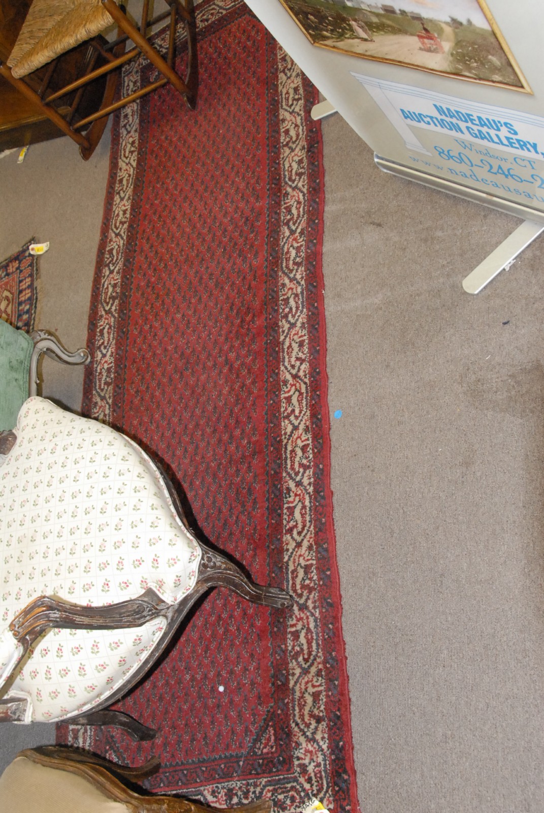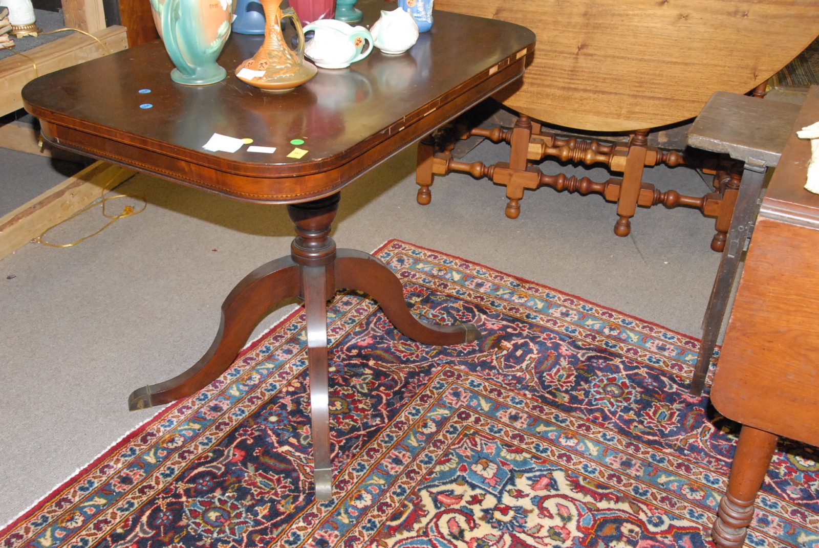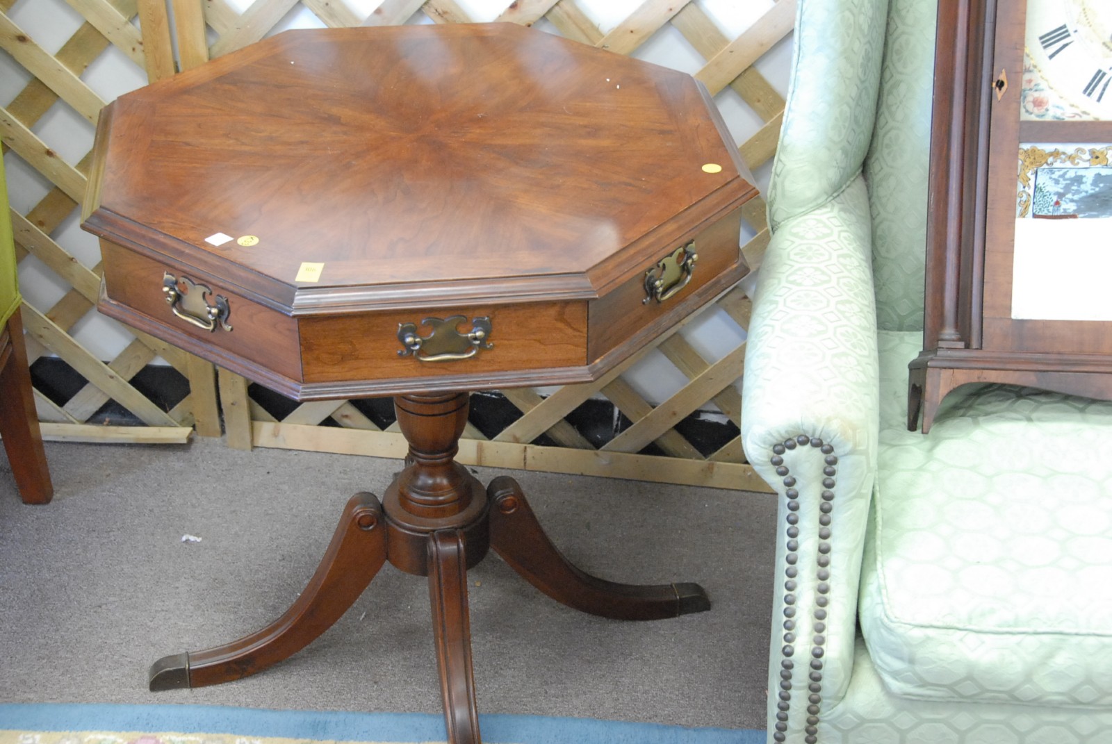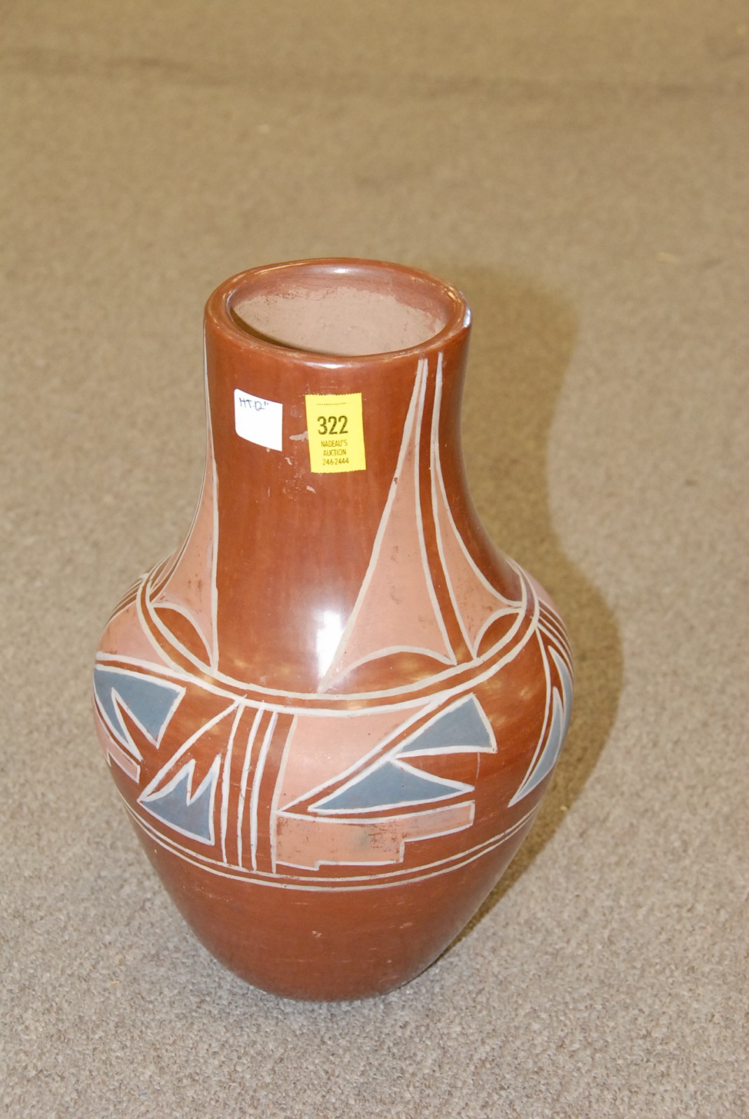 Group lot, including a group of 10 Majolica plates, crystal stems, amethyst vase, covered copper piece, a lamp, 2 wood carving, one a bird, and one a three dimensional plaque with a man