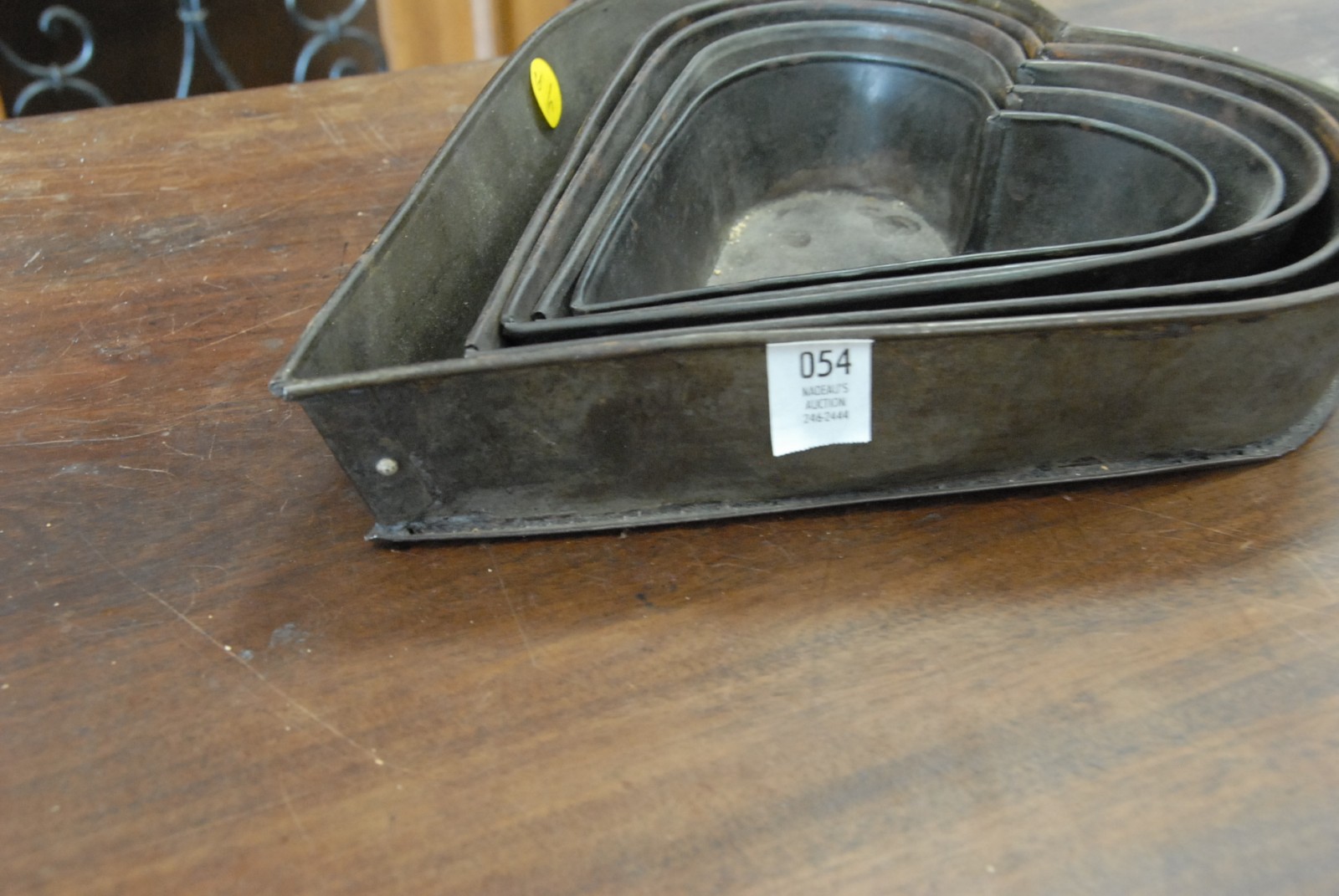 Nest of primitive tole heart shaped molds