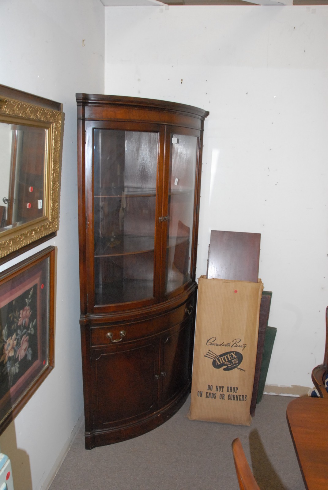 Mahogany bowed front corner cabinet