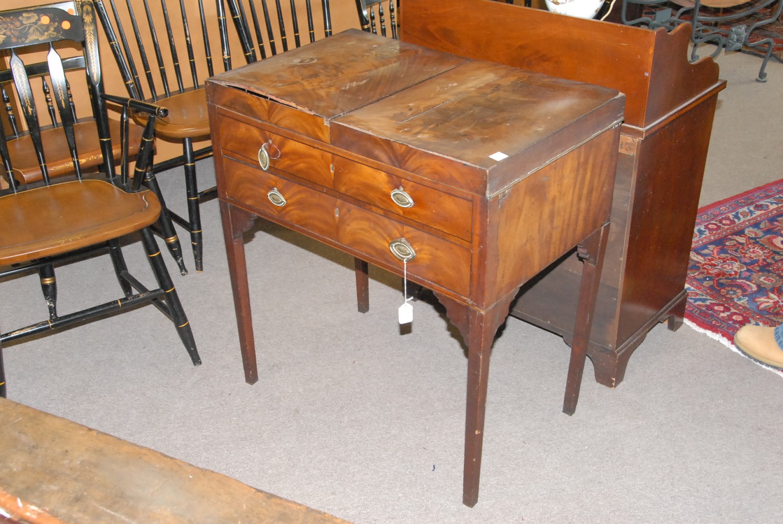 George IV mahogany pedruse with two opening tops on squared tapered legs, 19th century