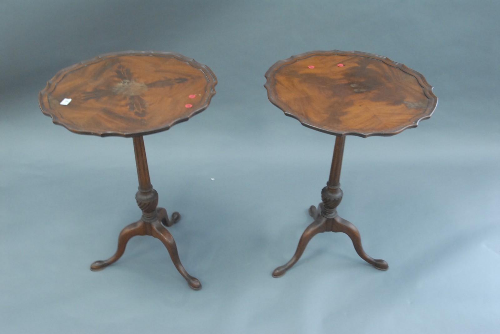 Pair of mahogany piecrust tables