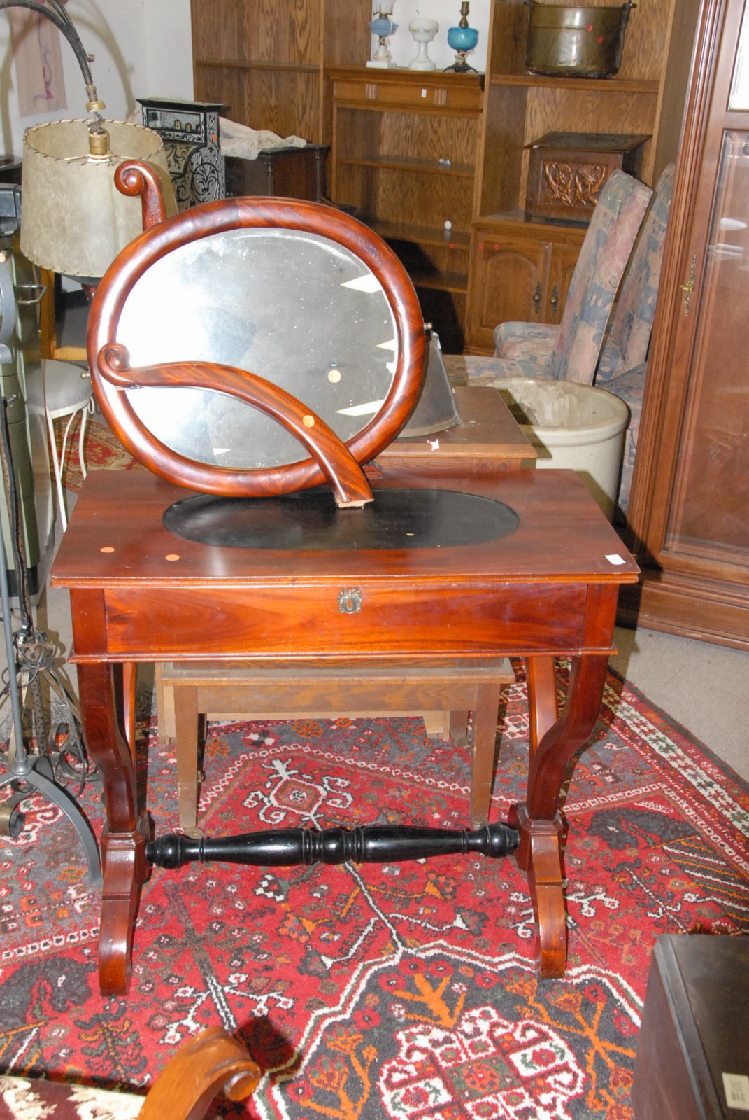 Mahogany vanity and mirror, as is