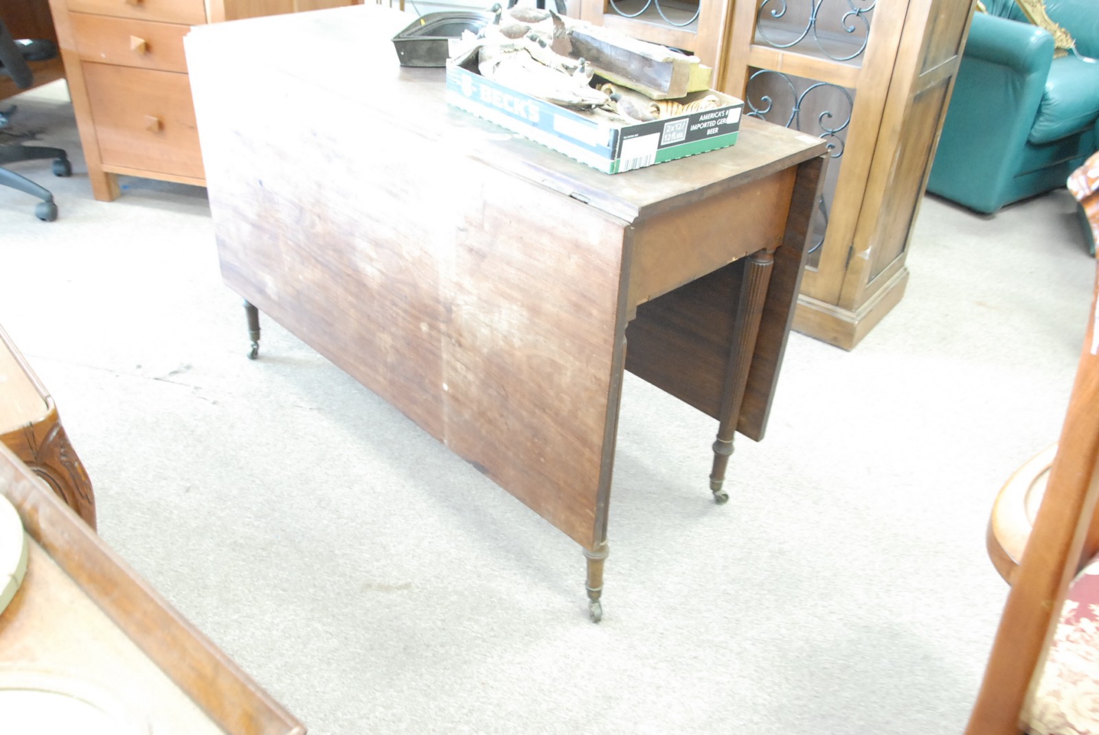 Custom mahogany two part dining table with one large leaf