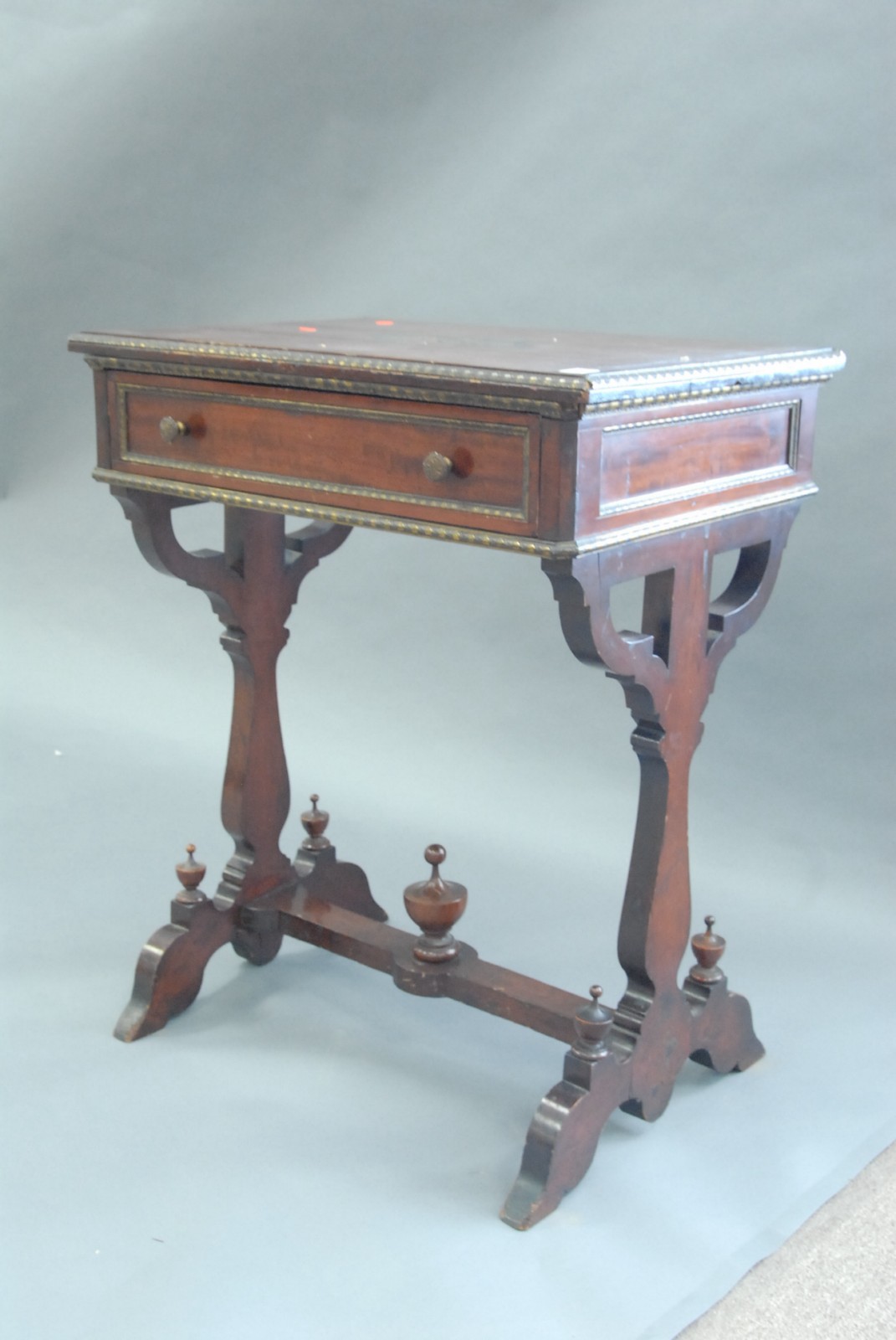Victorian mahogany inlaid work table with one drawer, with metal mounts