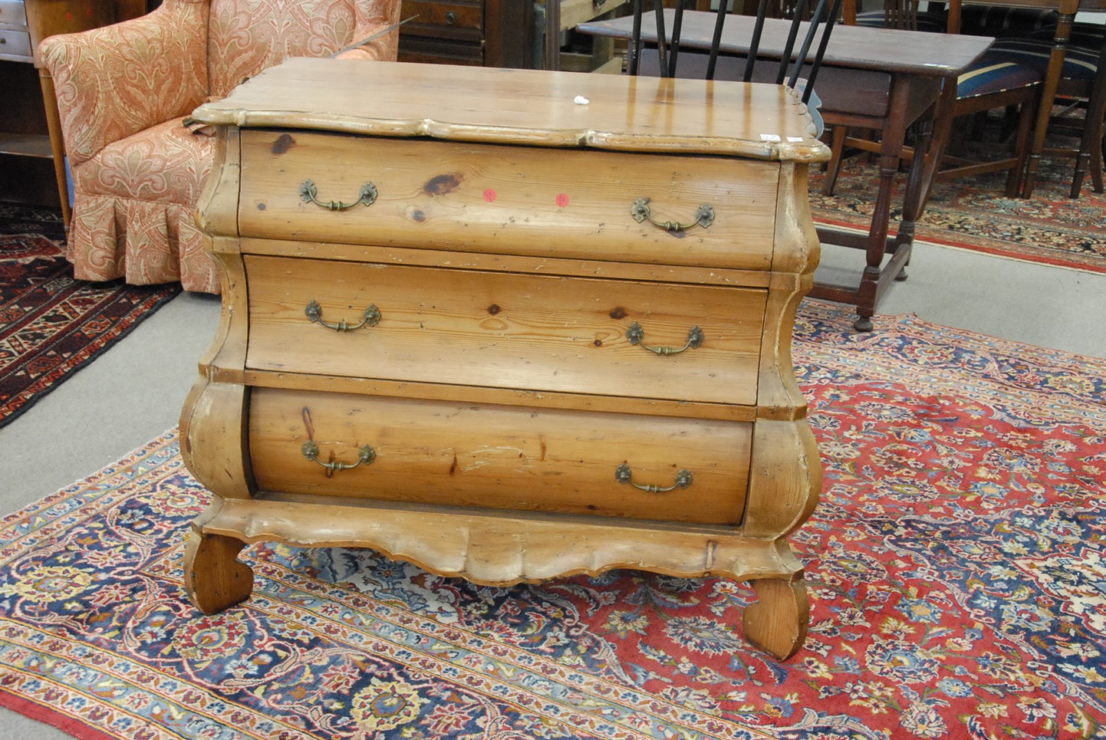 Dutch style three drawer pine chest