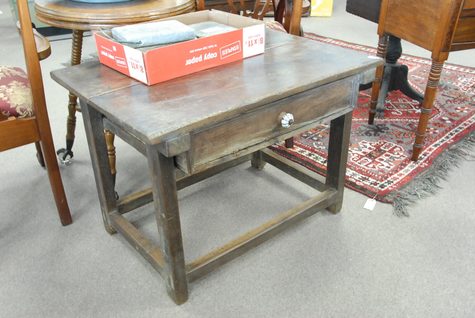Early continental work table with drawer