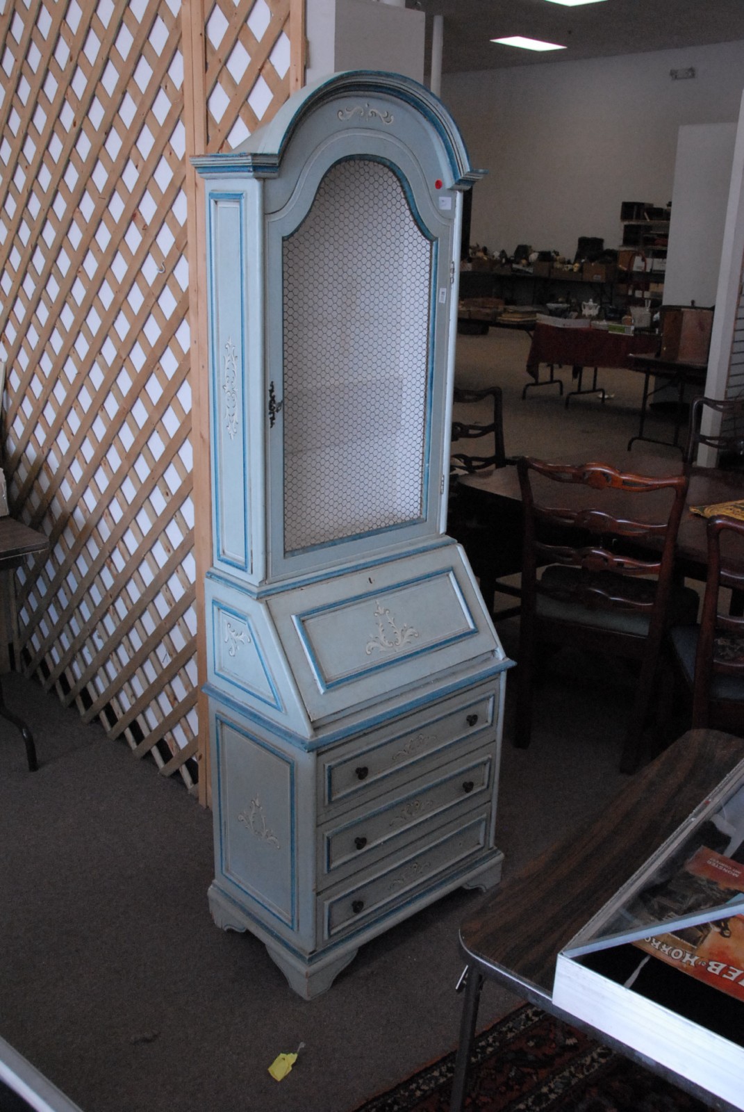 Light blue painted small secretary desk