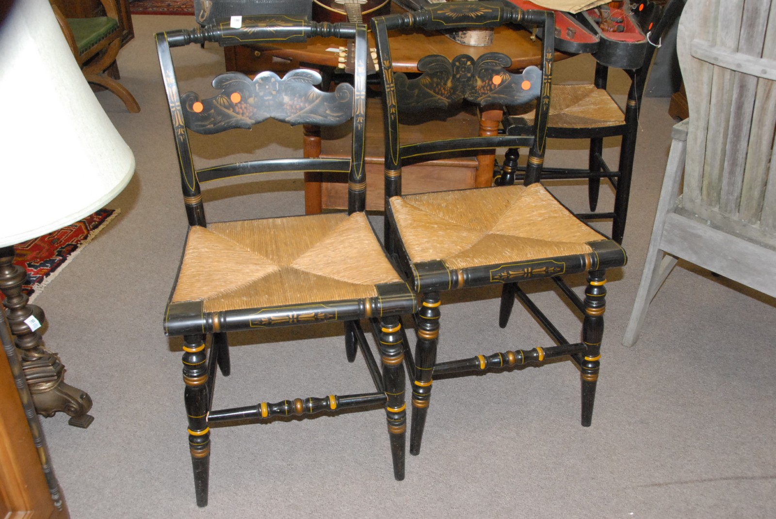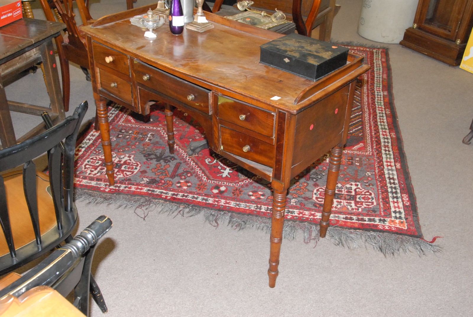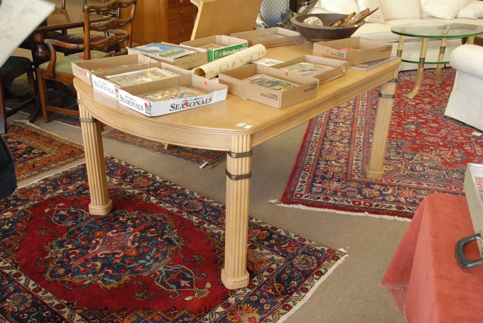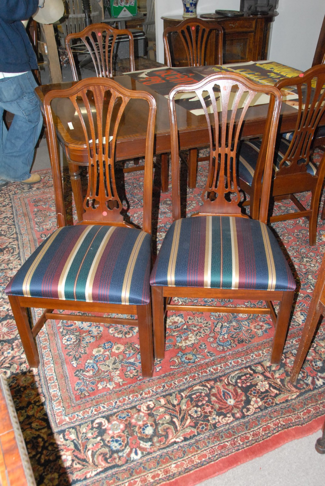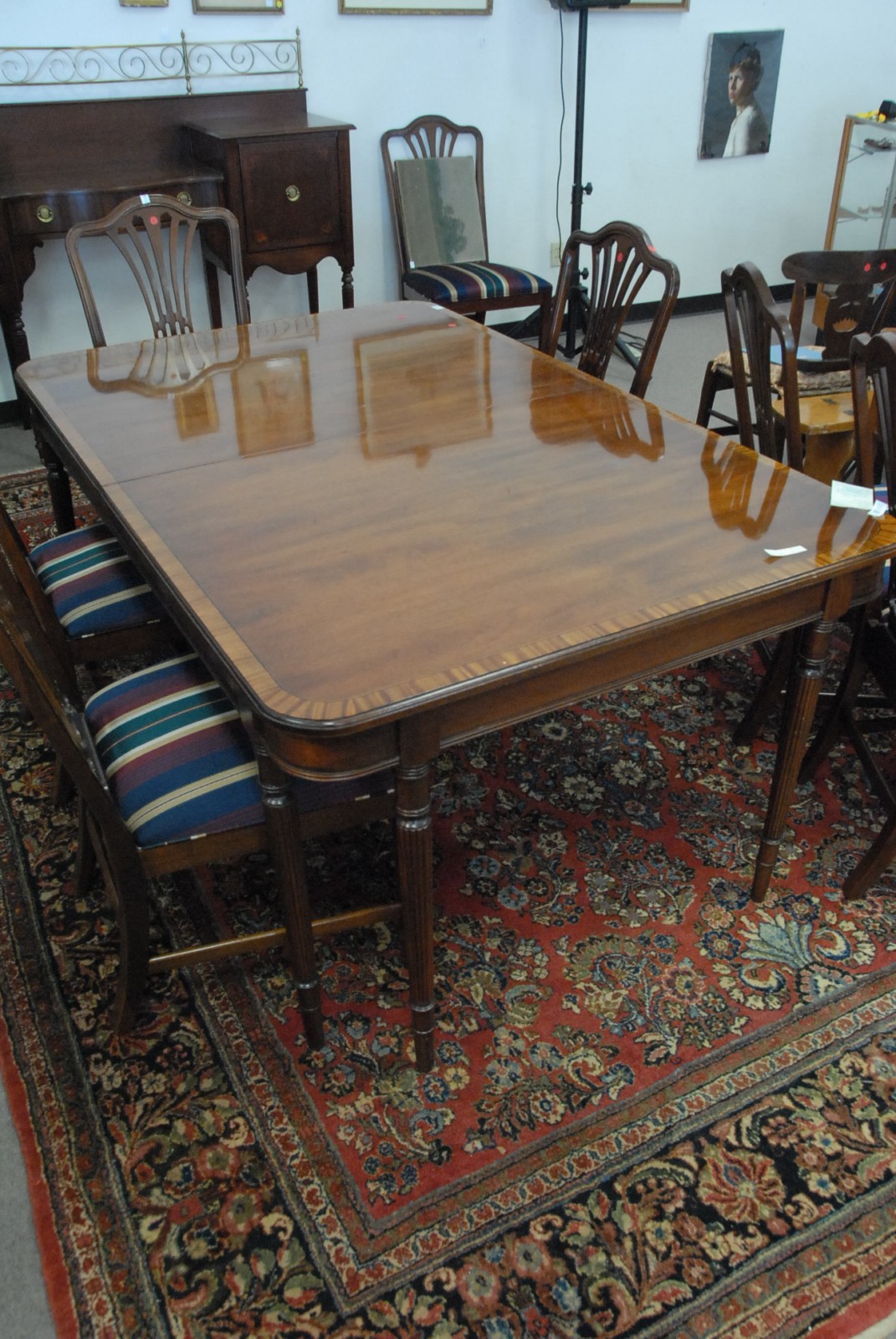 Sheraton style mahogany dining table with banded inlaid top, with two leaves