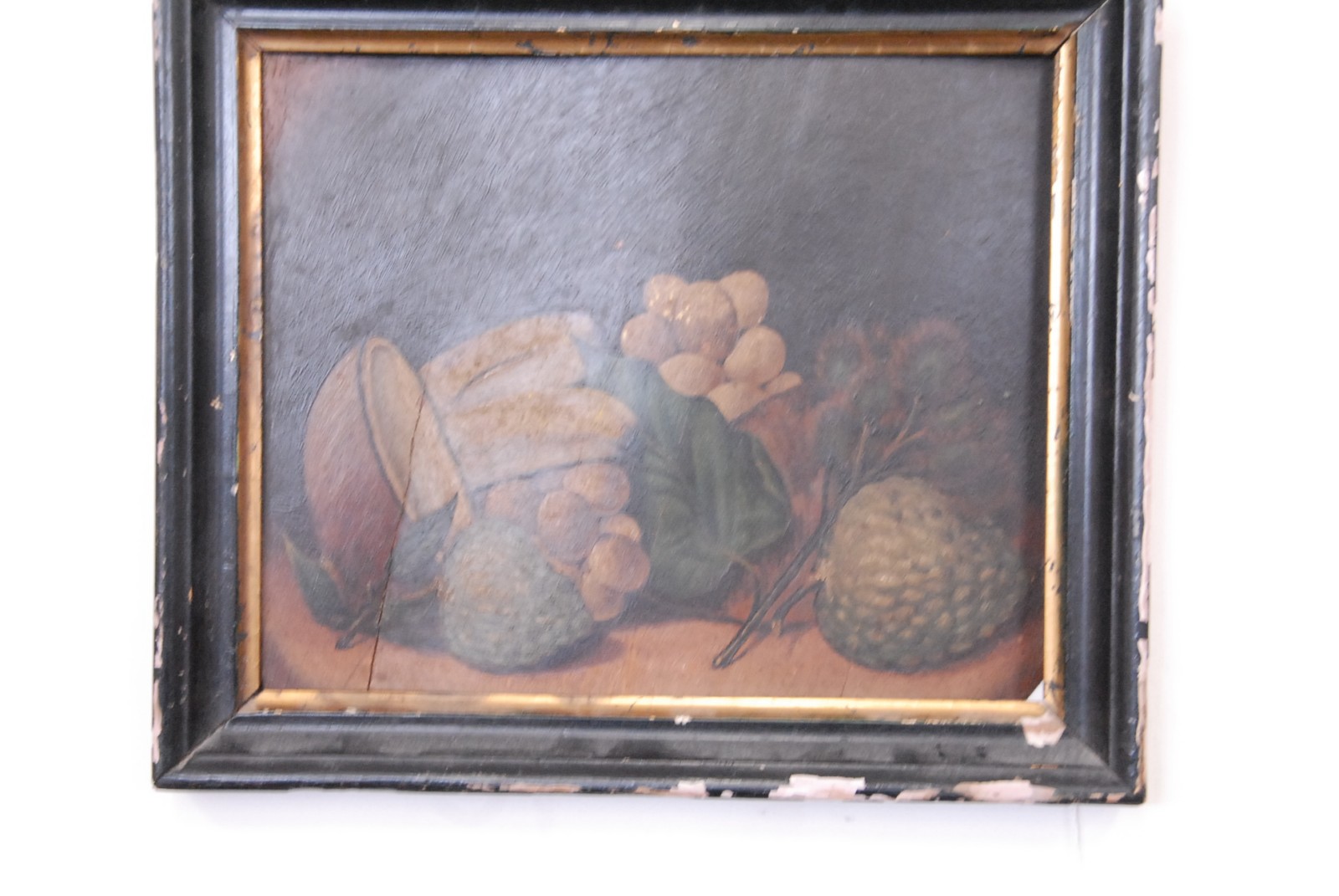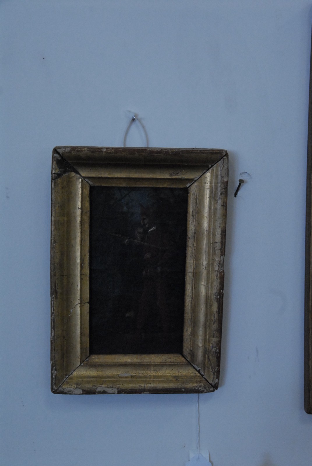 Continental mounted mirror with two cande holders, with metal leaf decoration, early 19th century