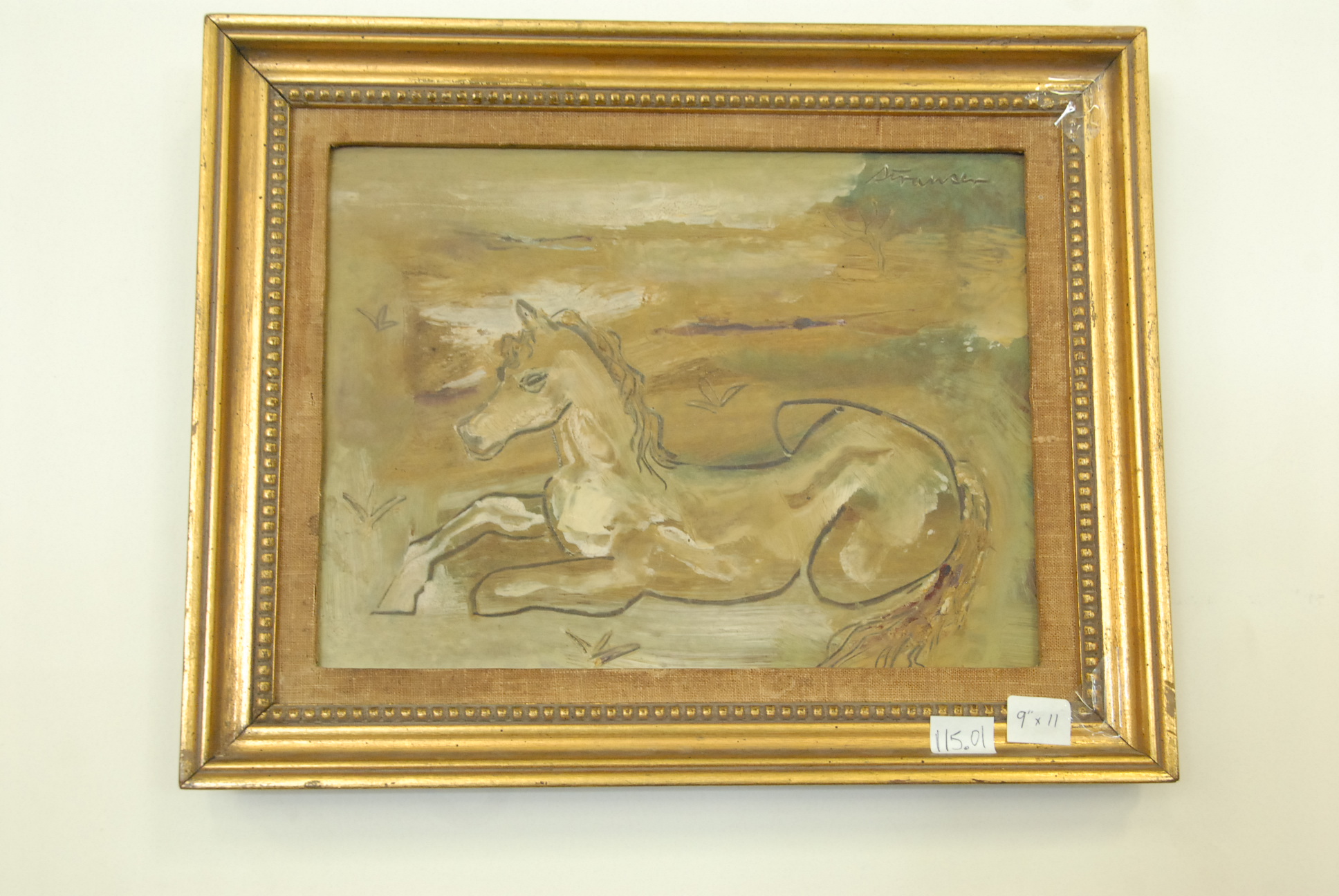Sterling Boyd Strauser 1907-1995, Oil on board of a horse, signed upper right, Strauser