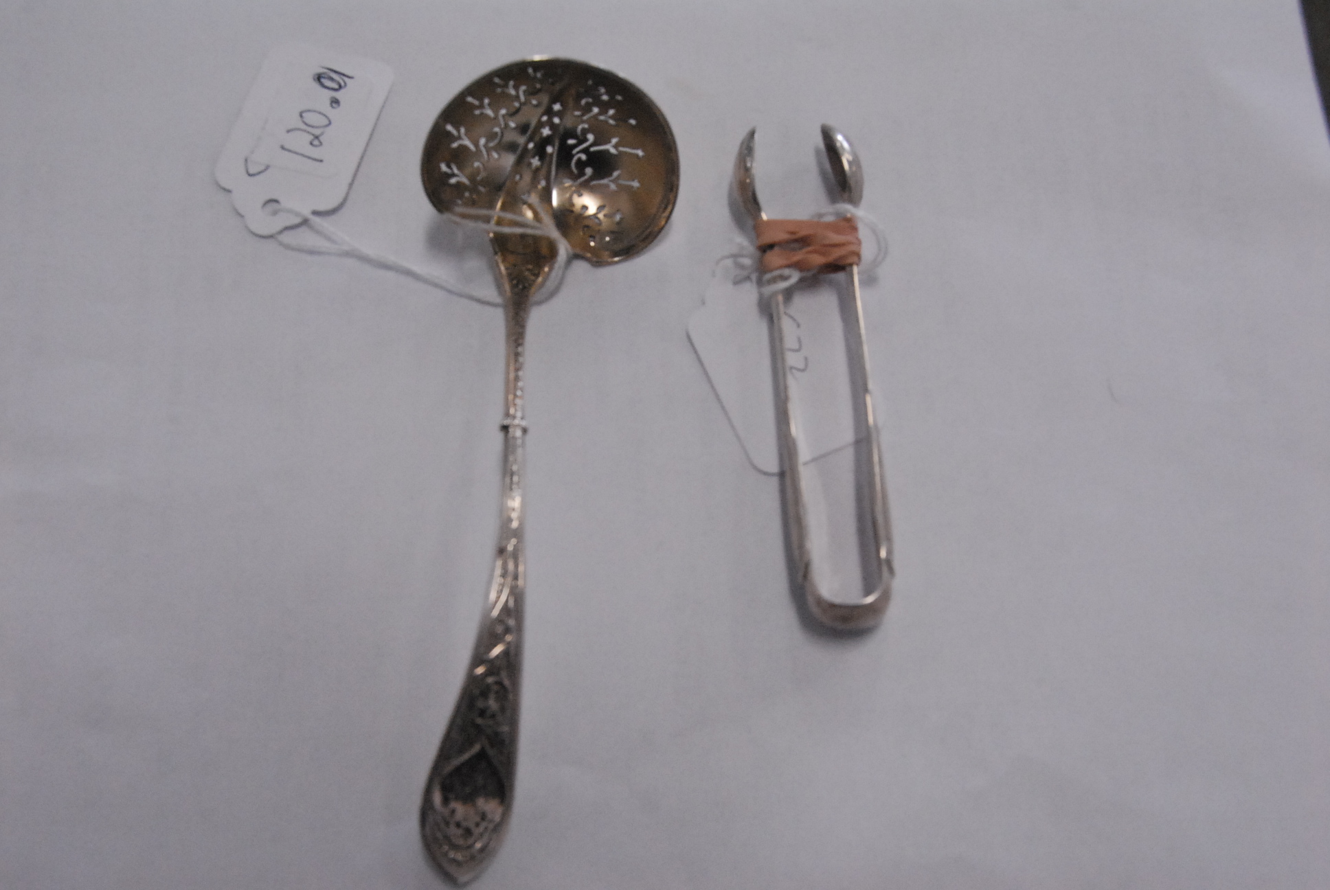 Small Tiffany sterling ladle and a pair of small Tiffany sugar tongs