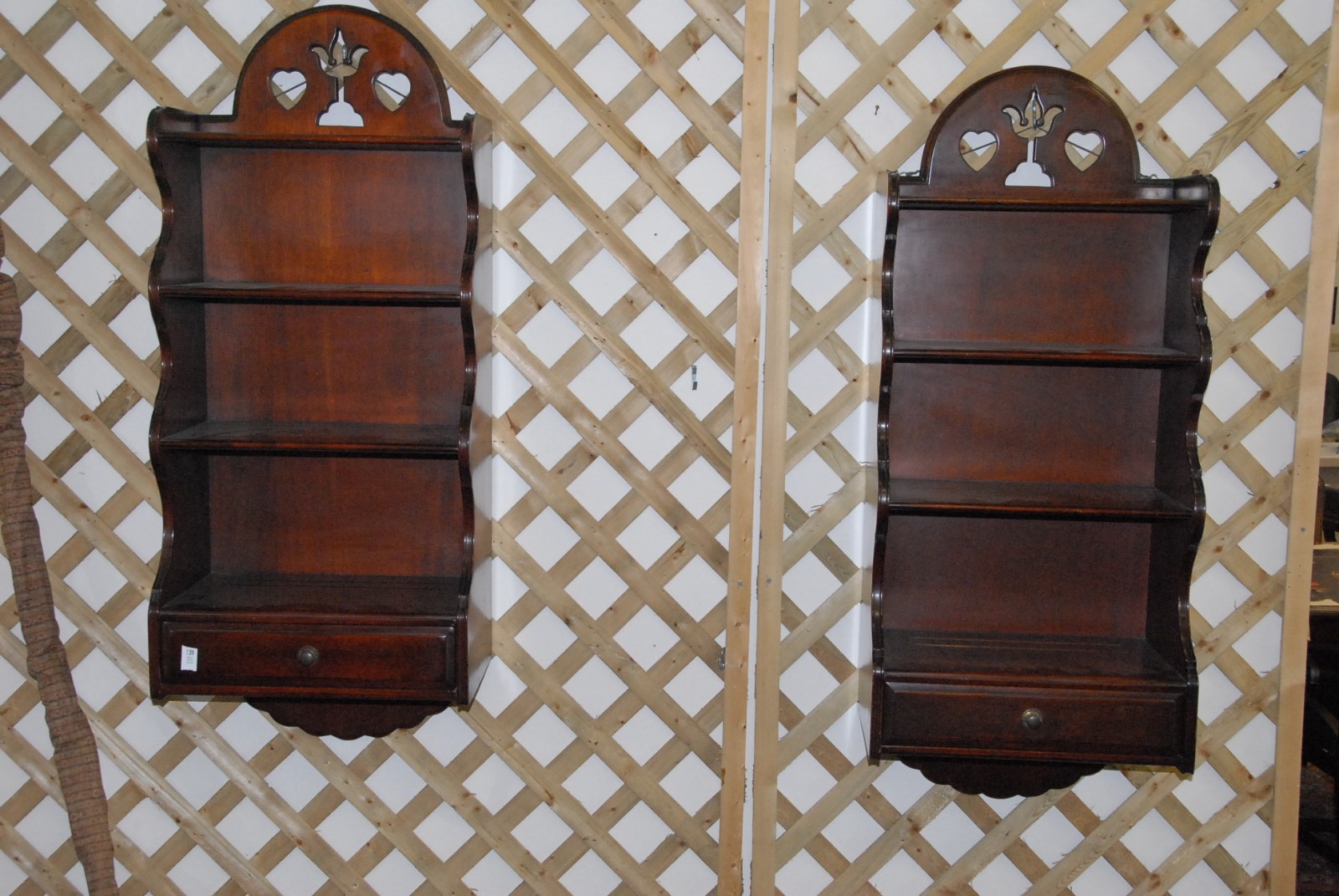 Small lot to include a brass plaque, carved plaque, small shelf, and a covered porcelain jar