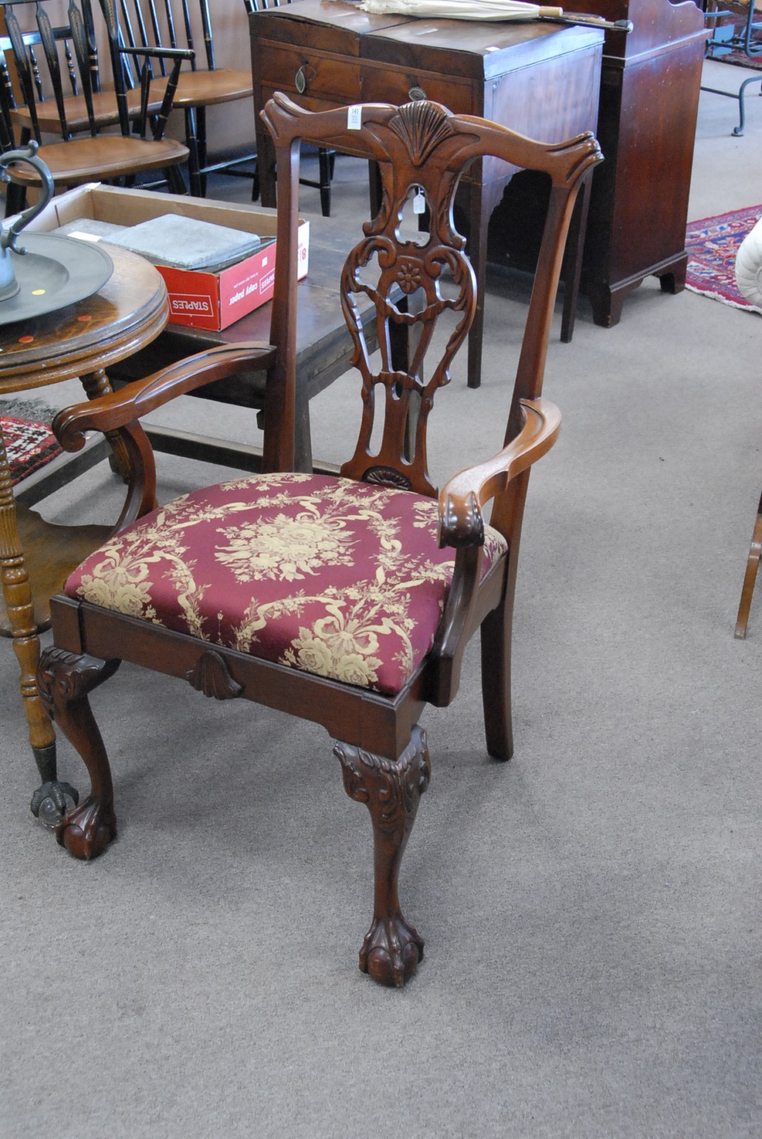 Pair of custom mahogany Chippendale style armchairs with ball and claw feet