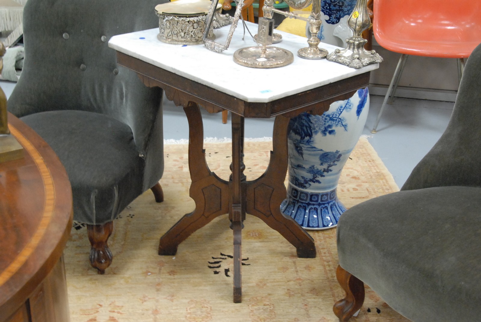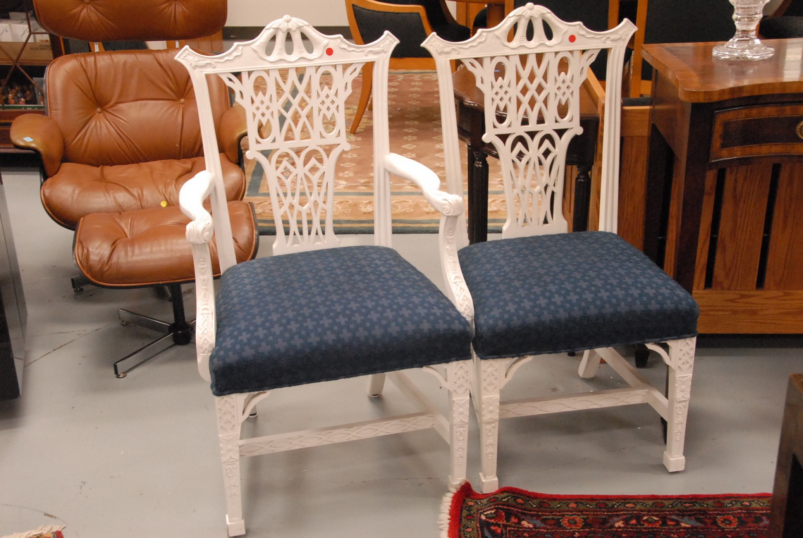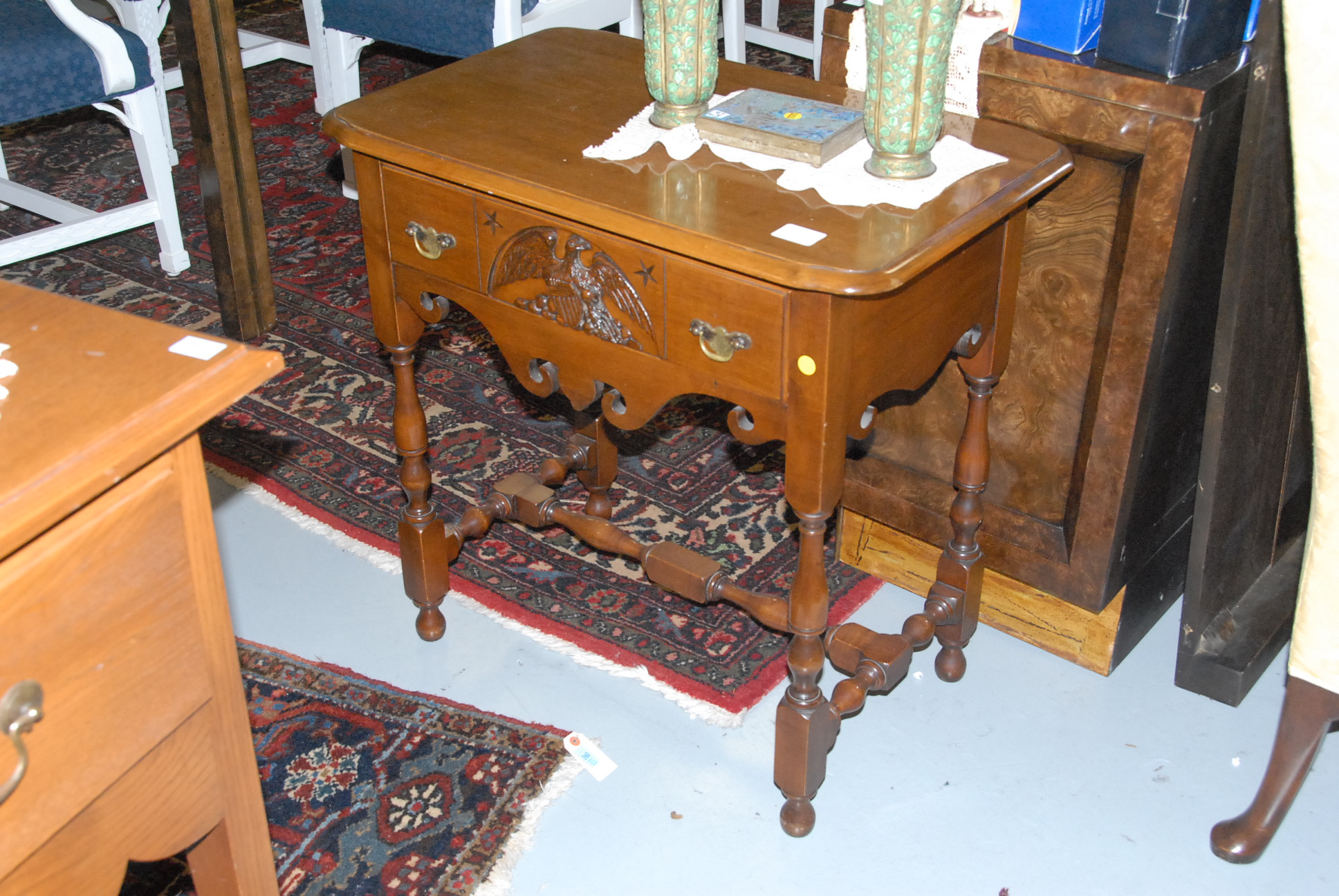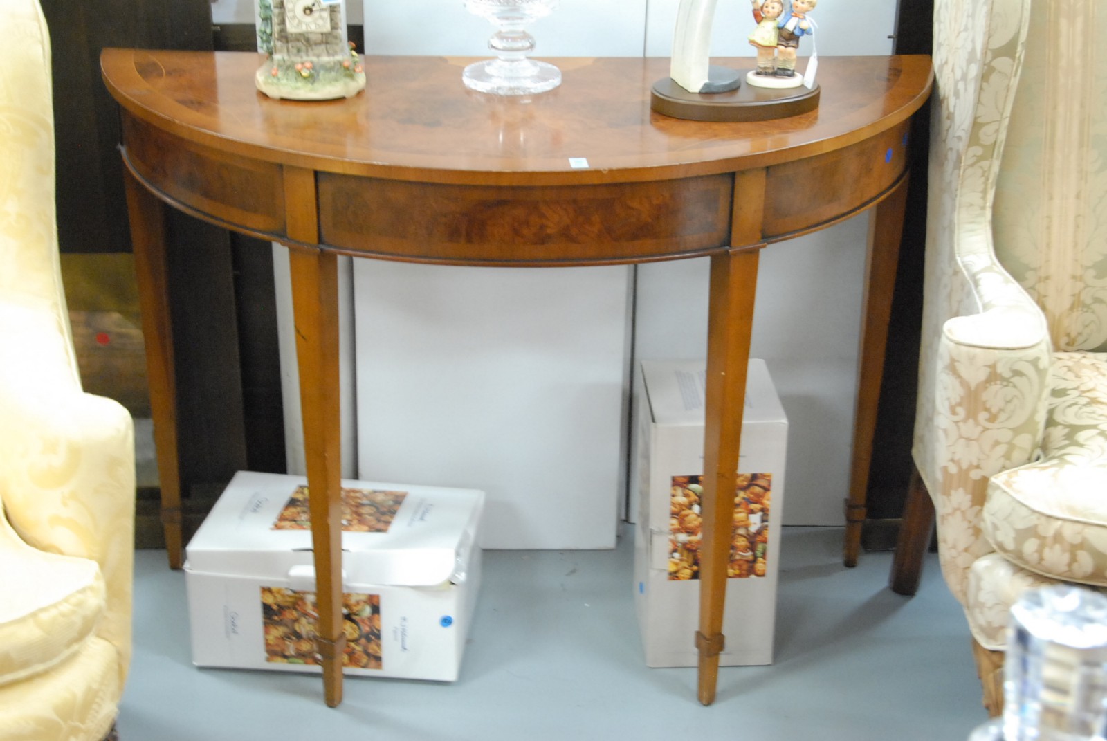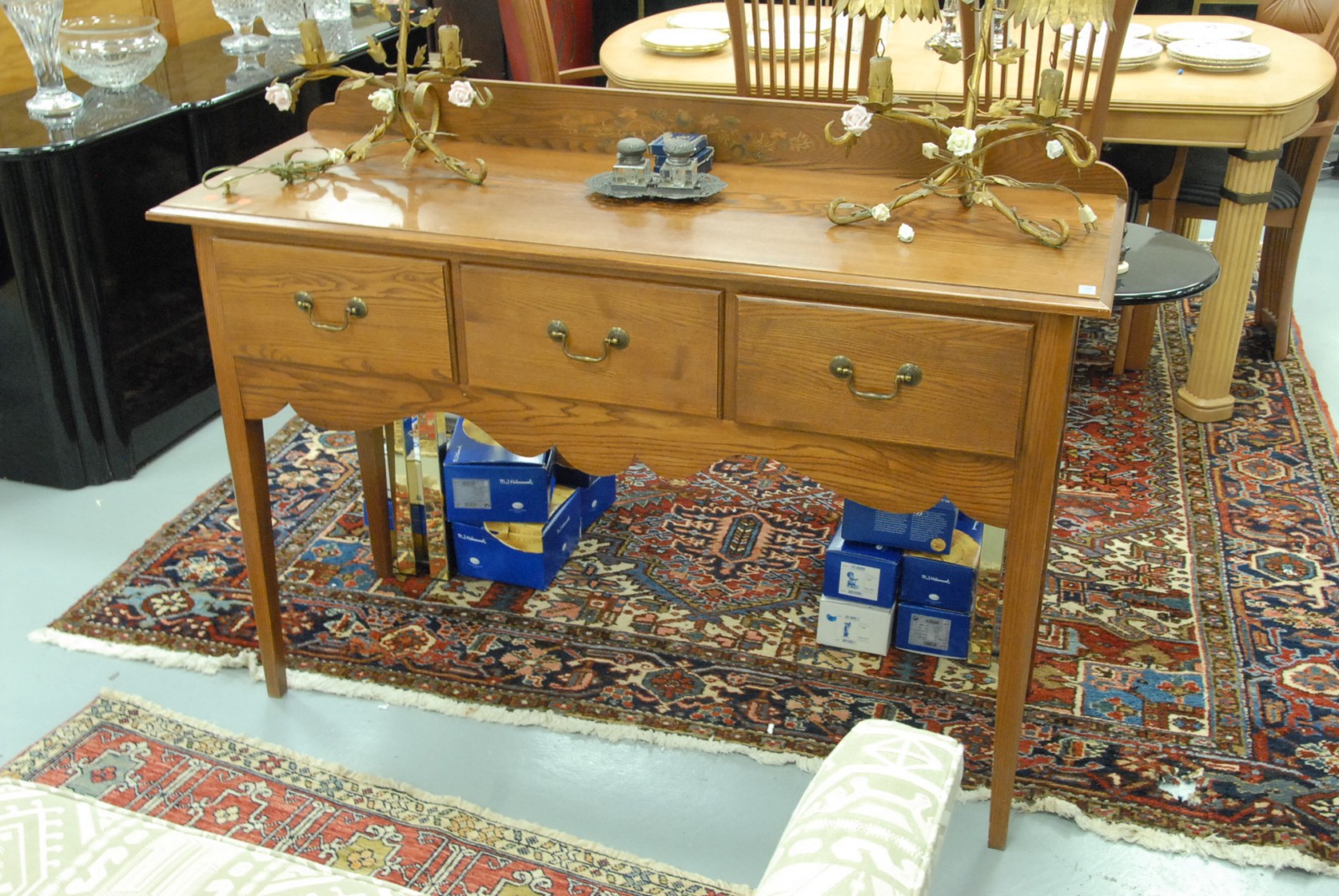 Large Burlwood dining room table with two leaves and pads, also Burlwood sideboard with four doors