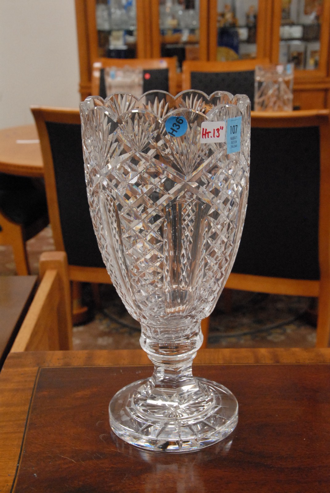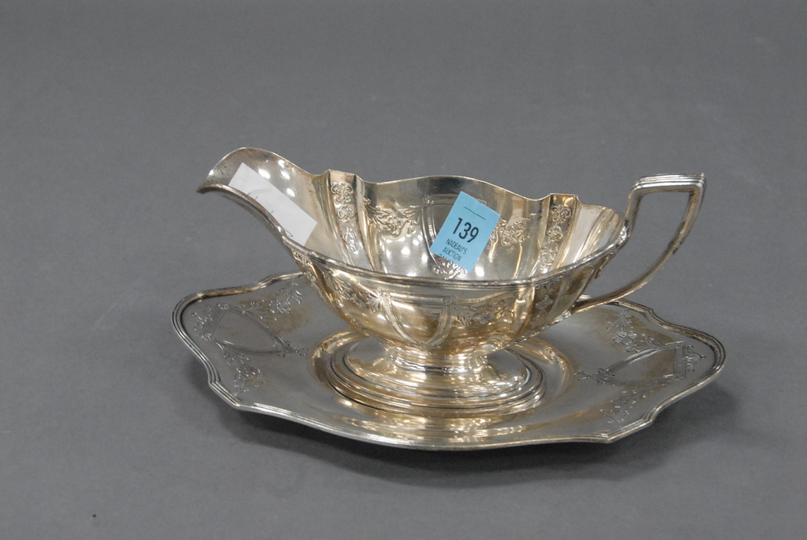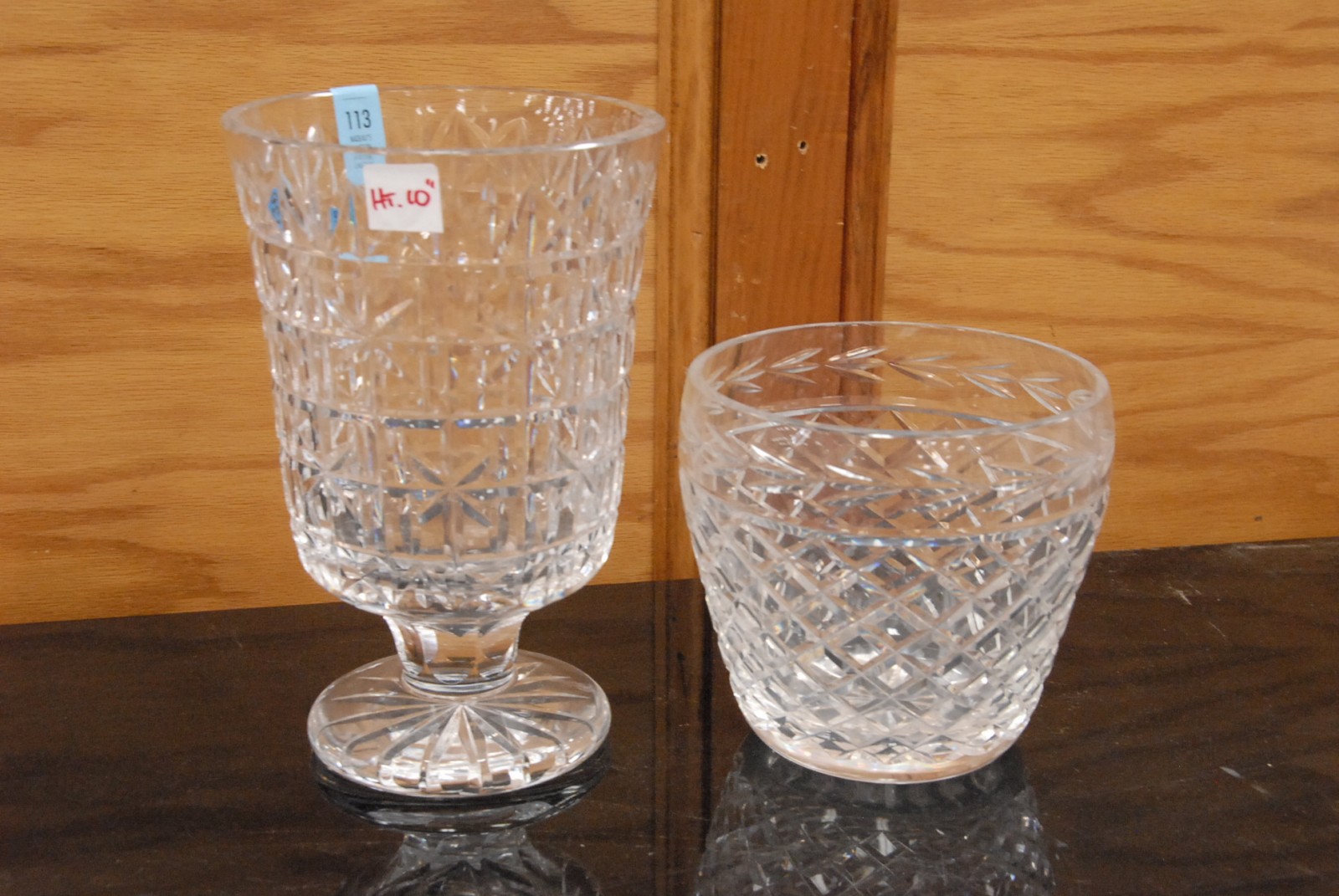 Pair of Sheffield silver plated candlestick and an ink set with two crystal bottles.