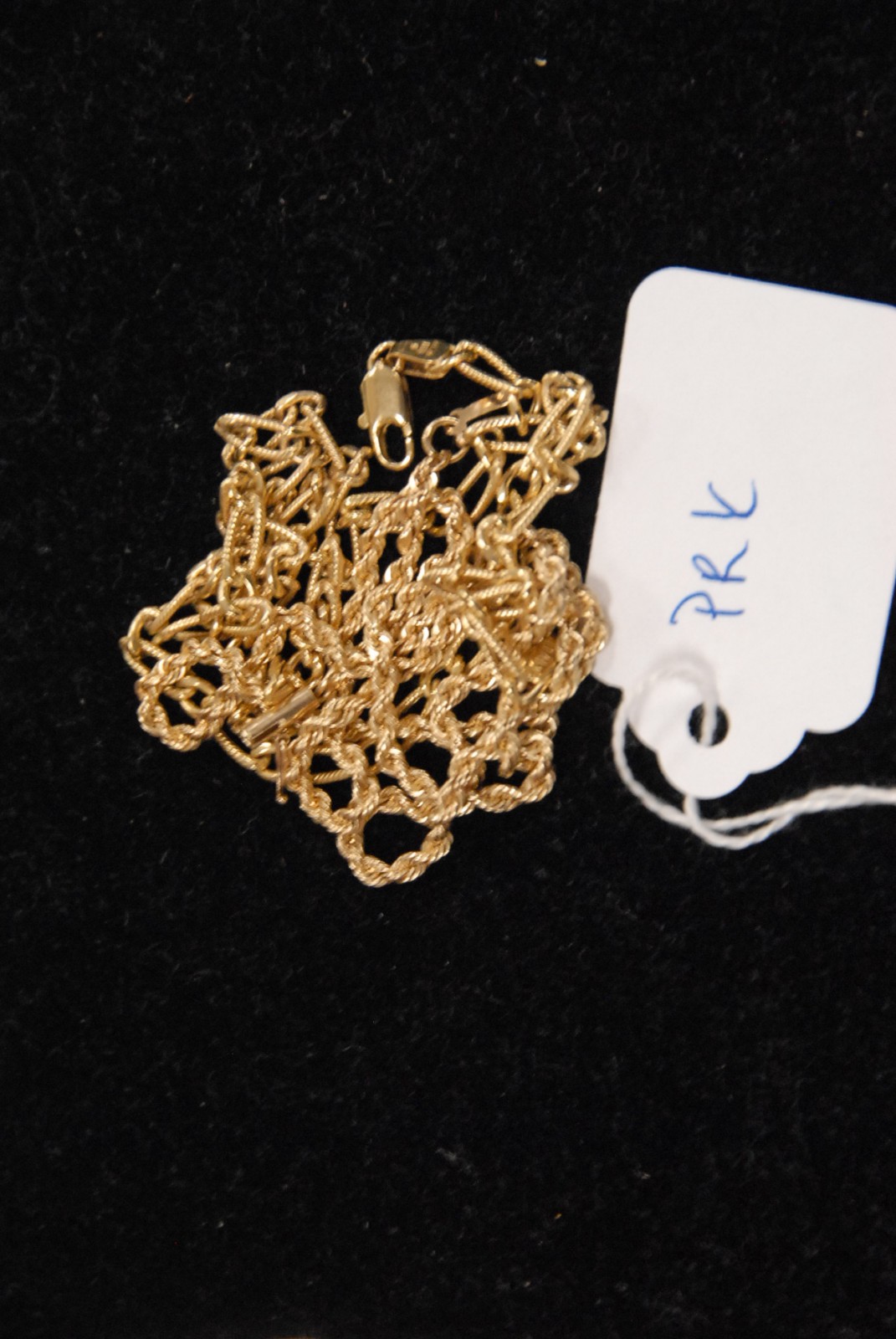 Bag of 14K gold jewelry, to include chains and jade mounted pendant
