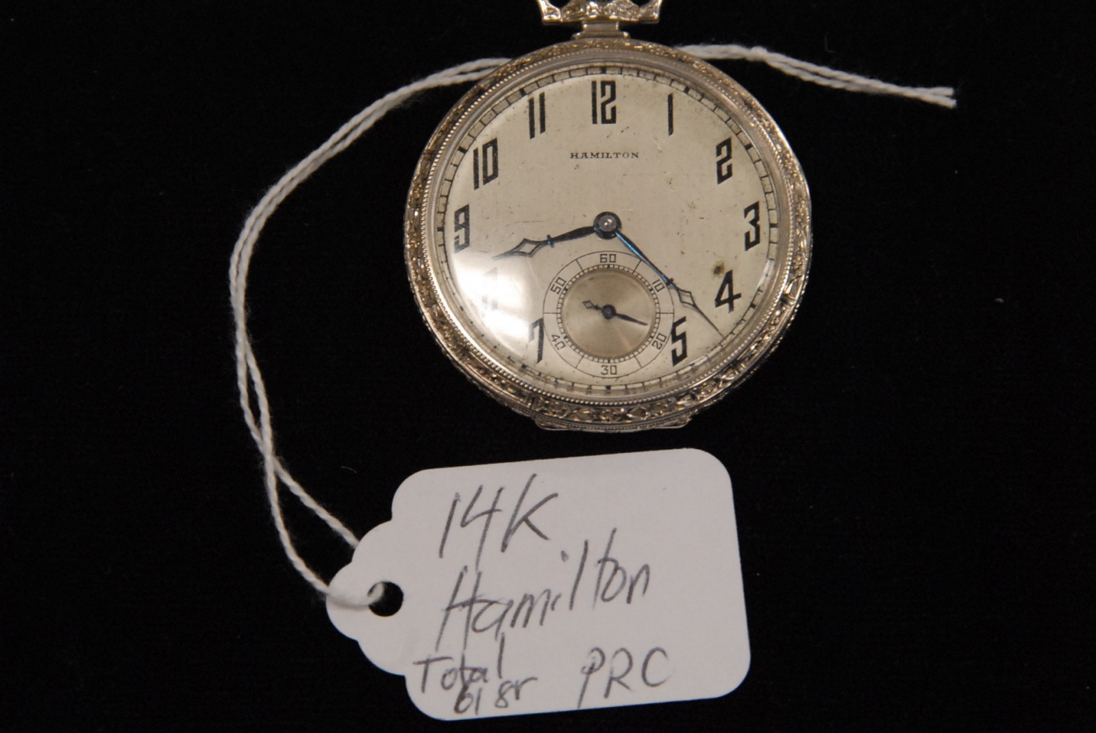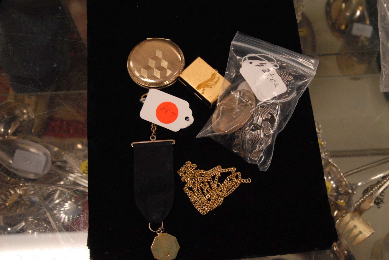 Bag lot of silver jewelry, bracelets, rings, medallion, and gold plated pocket watch, chain