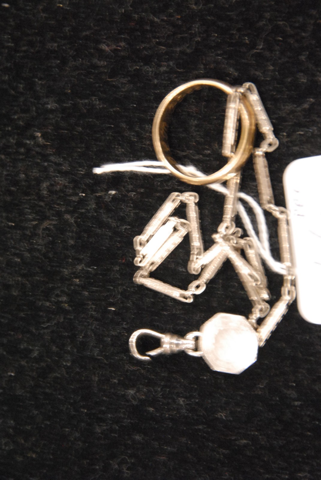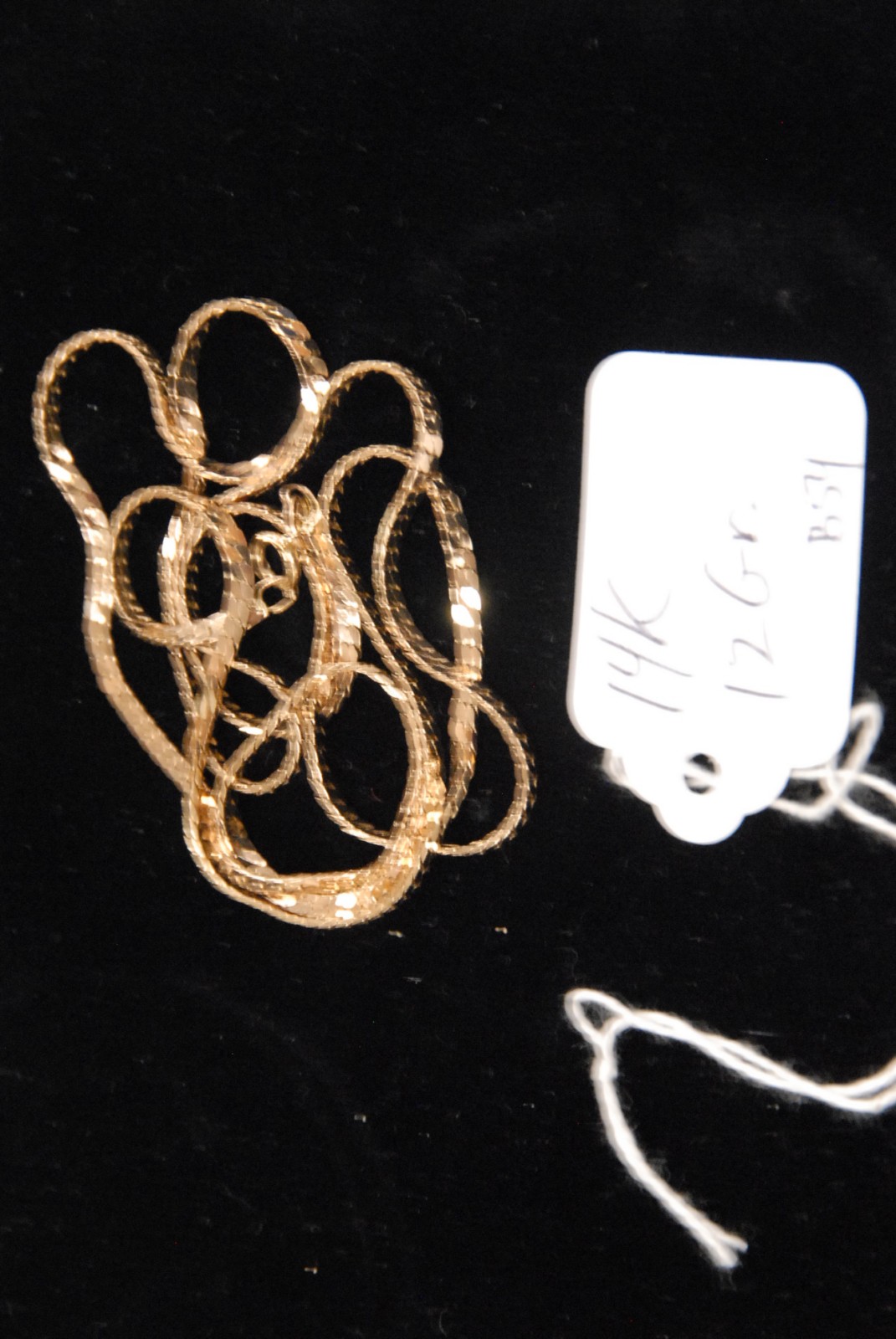 14K gold lot to include Tiffany gold mens ring and a white gold chain, clip on chain not gold