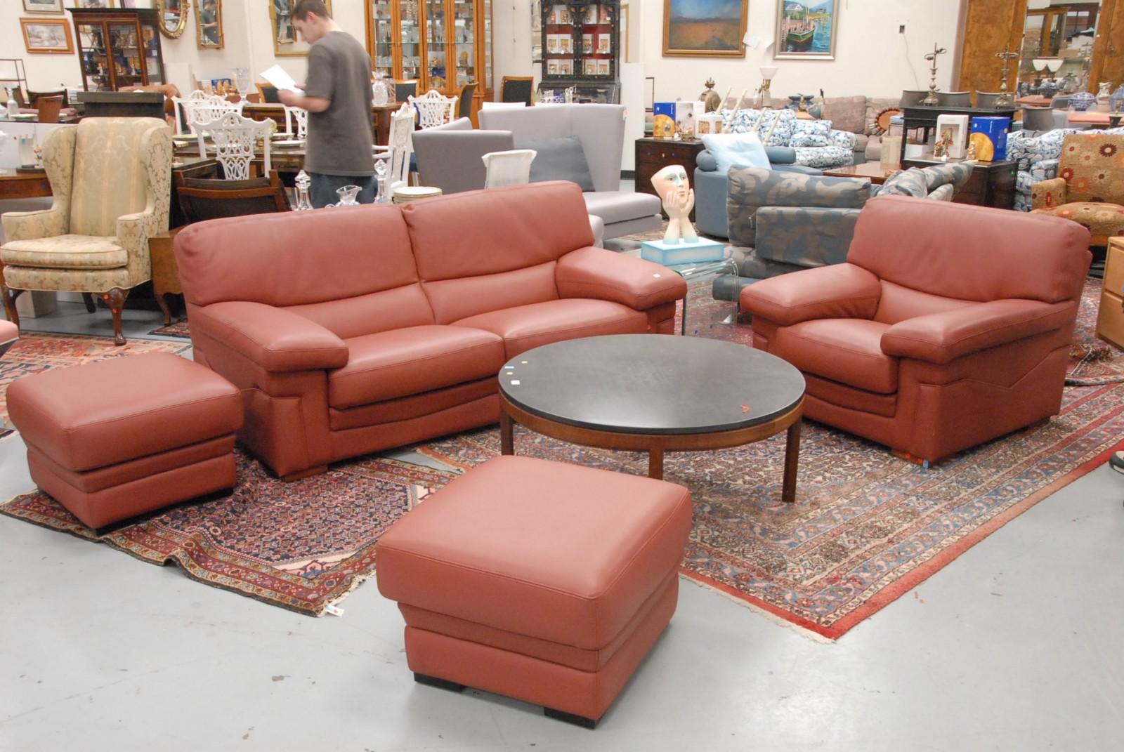 Roche Bobois four piece leather set, sofa , chair, two ottomans